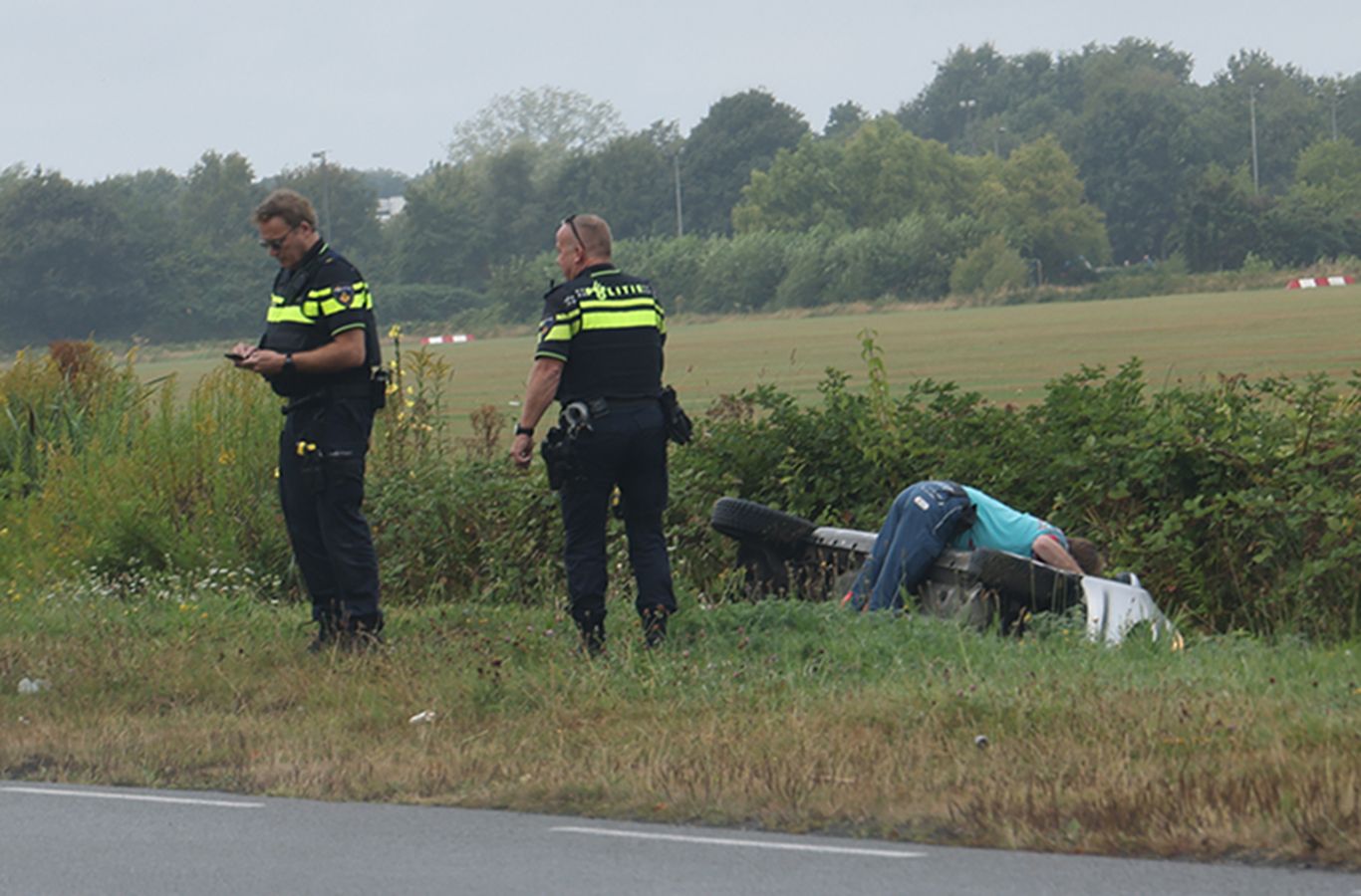 Bij de inmiddels beruchte bocht lag een auto op zijn zijkant in de naastgelegen sloot. Een berger heeft de auto afgevoerd. De precieze toedracht van het ongeval zal worden onderzocht.