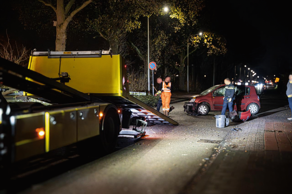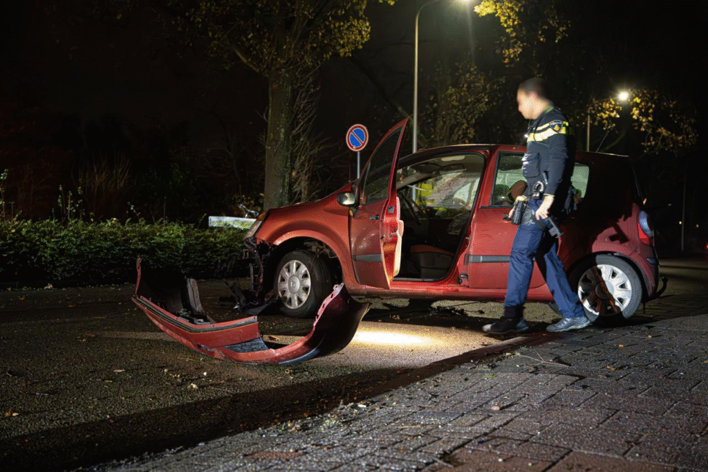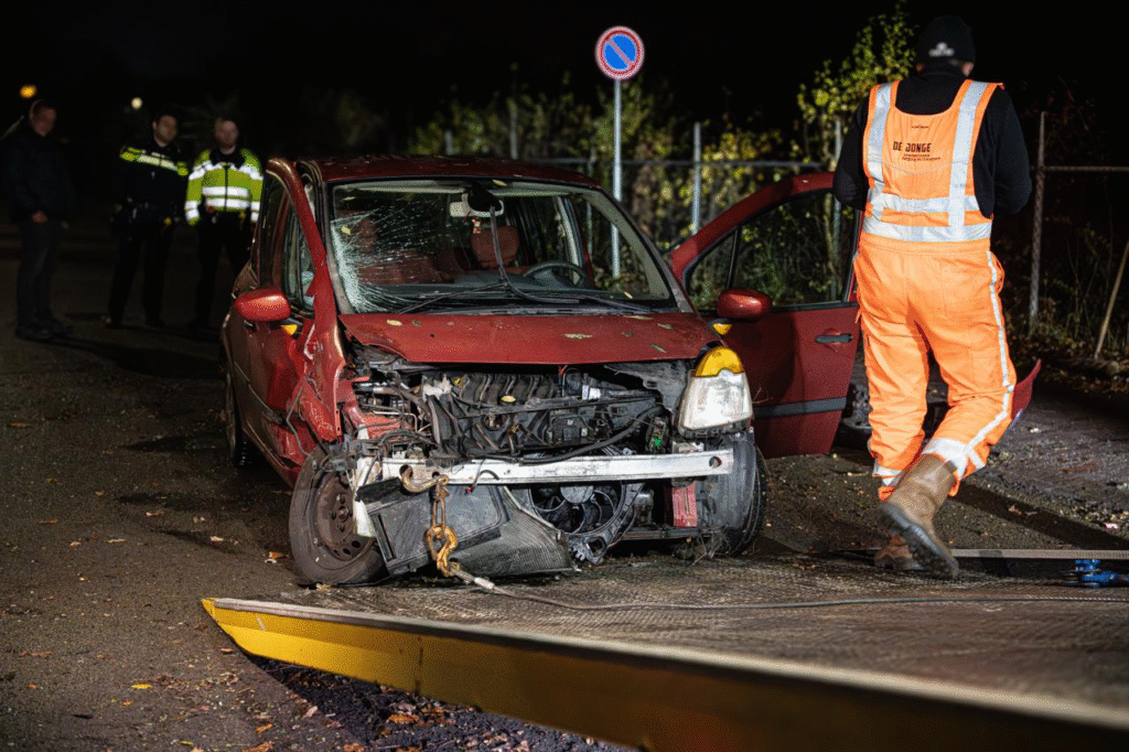 Een automobilist is vrijdagavond tegen een betonnen bak aan gereden naast de Griendtsveenweg in Hoogeveen. De auto is na de harde botsing met het object terug gestuiterd op de rijbaan.