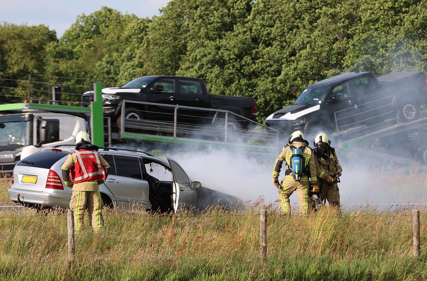 Maandagavond is een auto totaal verwoest door brand. Dit gebeurde op de A37 ter hoogte van Hollandscheveld.