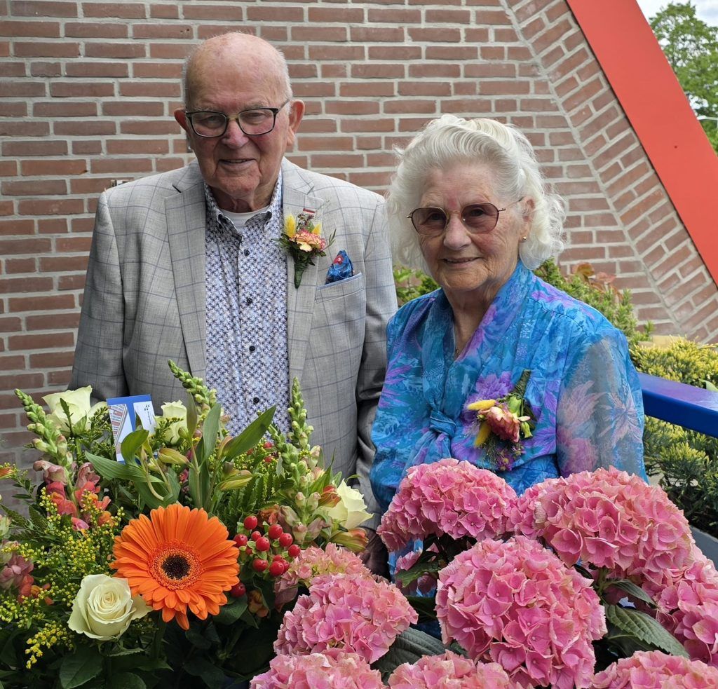 Ze zijn dankbaar en blij dat ze dit bijzondere moment samen met hun drie gezonde kinderen en hun partners, negen kleinkinderen met hun partners en negen achterkleinkinderen mogen meemaken. Foto: Elly van der Weide