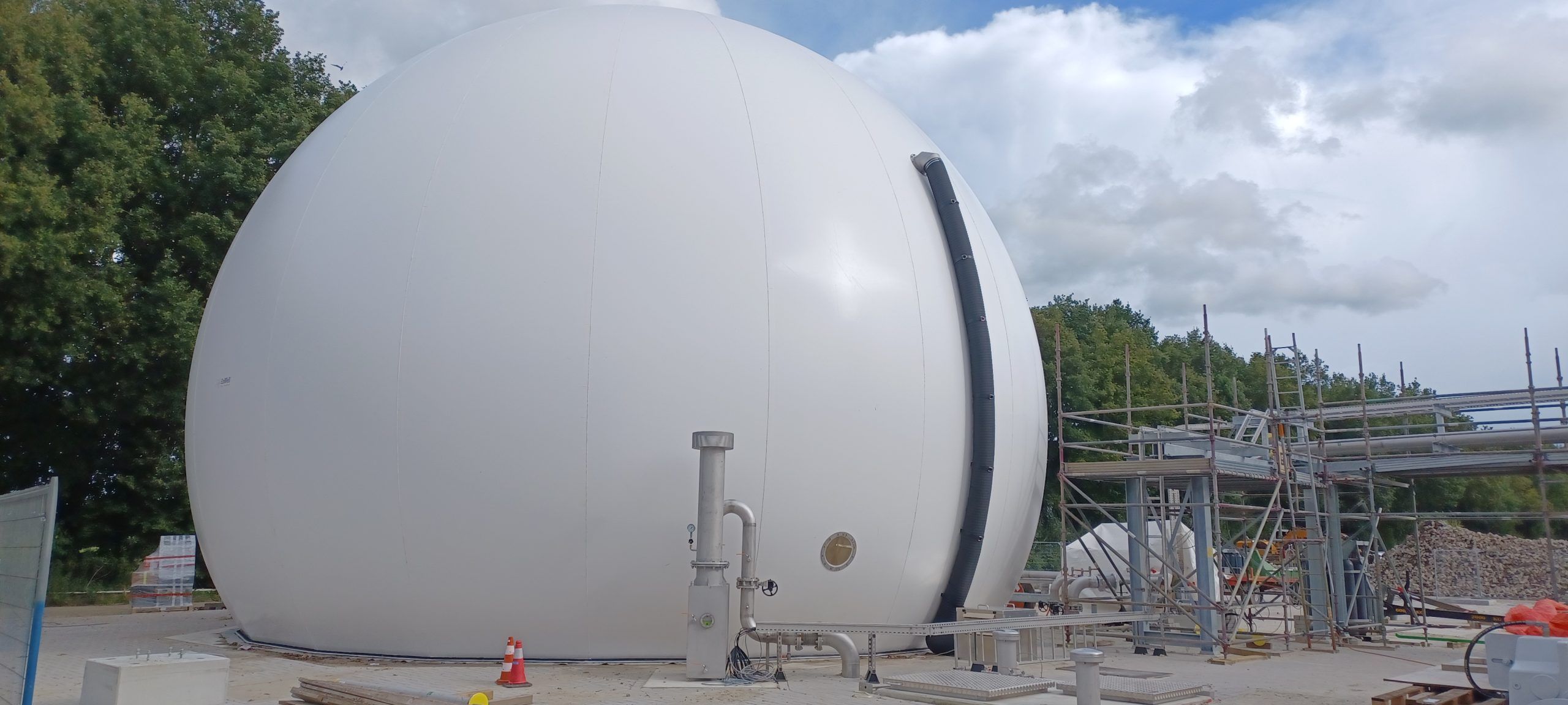 Echten – Een bijzonder moment bij ons project op rioolwaterzuivering Echten: het plaatsen van de grote ‘gasballon’ met een inhoud van 1500 kuub.