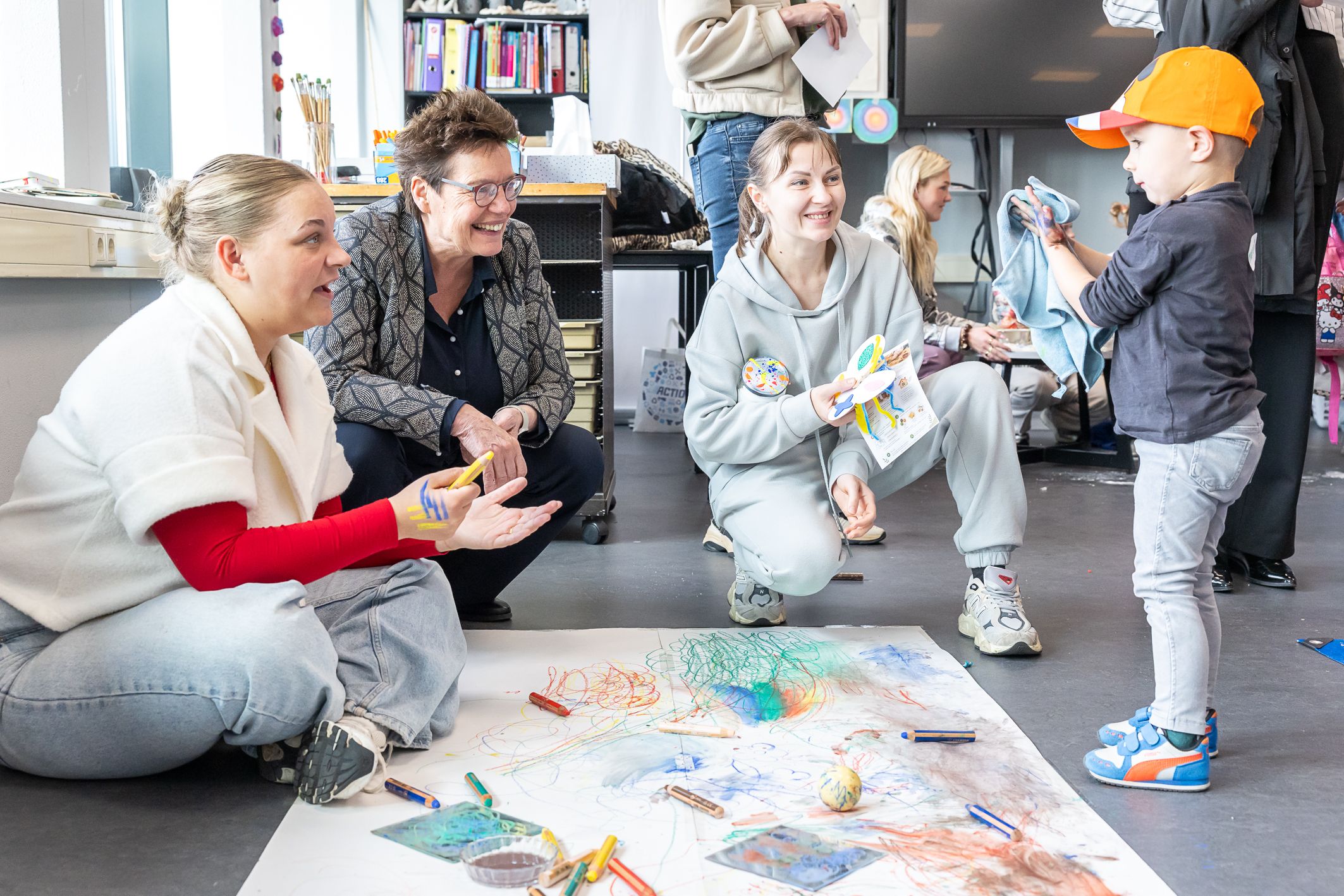 Na een ontvangst en inhoudelijk gesprek met betrokken partijen over de meerwaarde van dit project voor de regio – en voor de ontwikkeling van het jonge kind in het bijzonder – werd het Kindatelier bezocht. Daar begeleidden studenten een kleutergroep van PCBS Het Mozaïek uit Hollandscheveld en de peuters van peuteropvang Villa Tamboerke uit Hoogeveen.