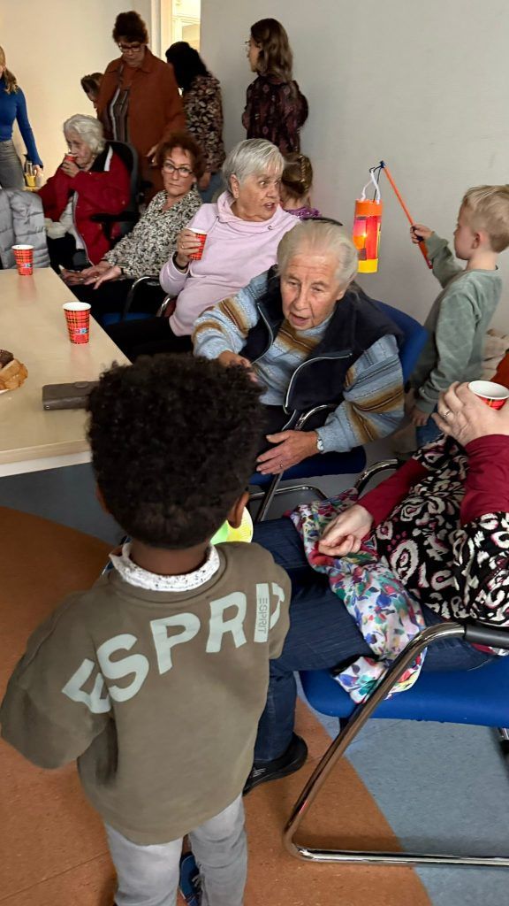 Hoogeveen – In de sfeer van St Maarten deelden de kleuters en groep 3 van de Titus Brandsma de gezelligheid met de bewoners van de Kloosterstate.