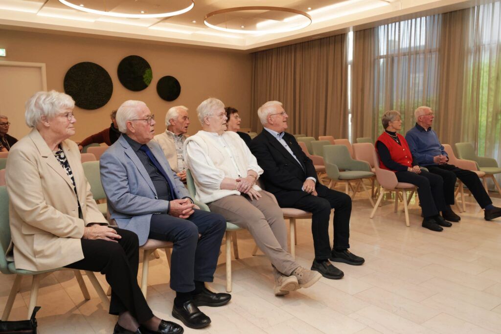 De echtparen werden ontvangen in de Trouwzaal alwaar de Burgemeester hen feliciteerde en in een korte toespraak wat bijzondere gebeurtenissen opnoemde die in 1965, toen deze echtparen in het huwelijksbootje stapten, gebeurden of typisch voor deze tijd waren. Hierna was het tijd om onder het genot van koffie met gebak nader kennis te maken en met elkaar praten, waarbij er ongetwijfeld menig anekdote over de tafel gerold is.