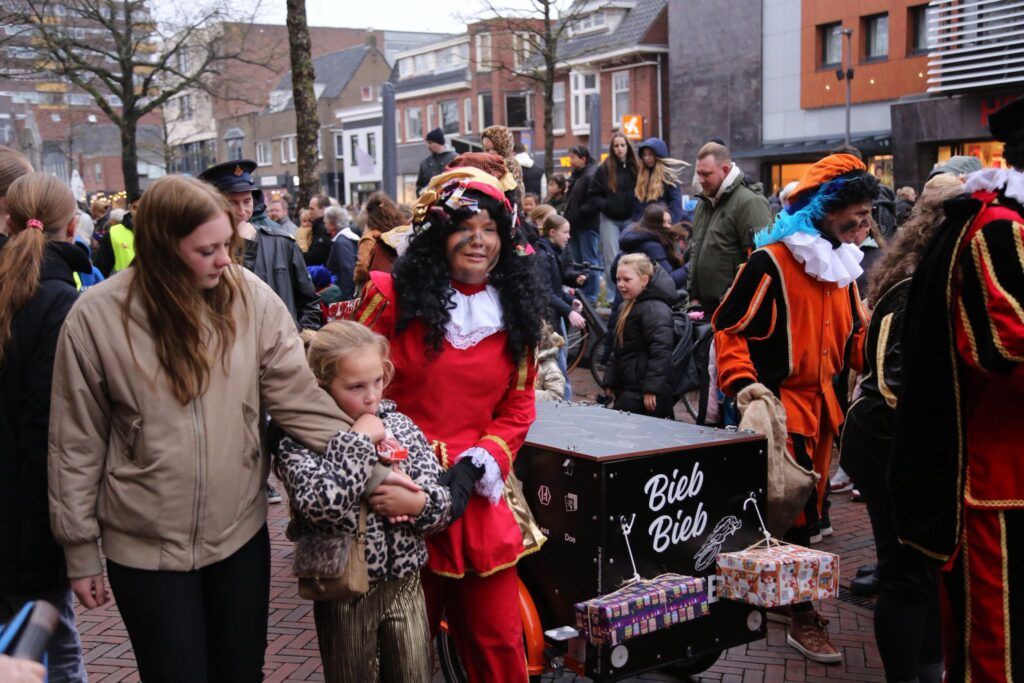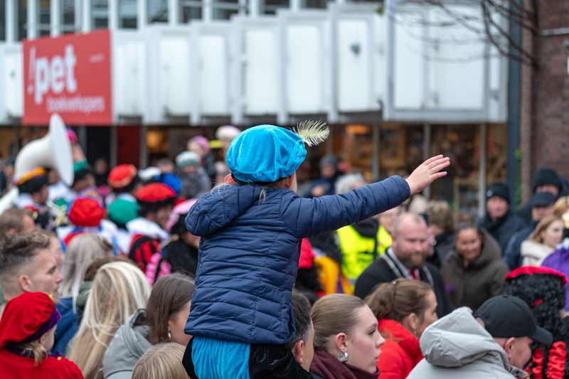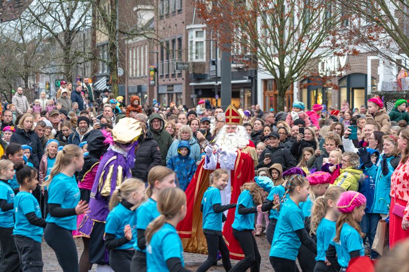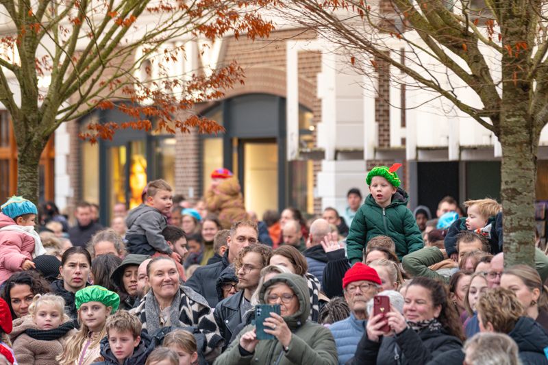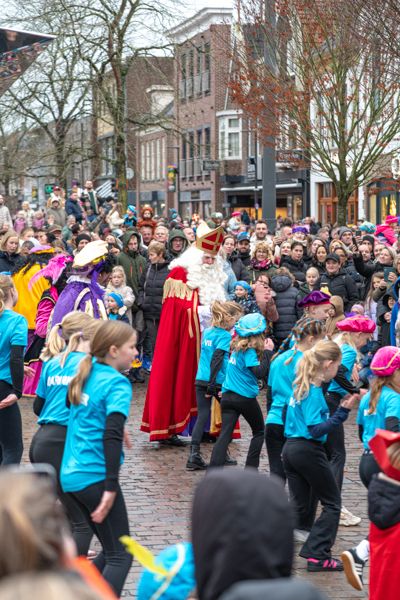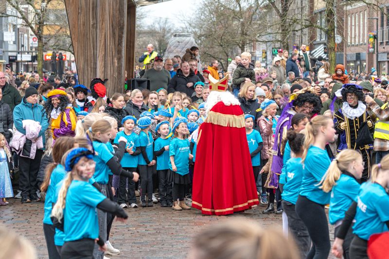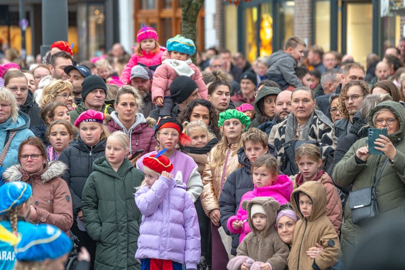 Ondanks de miezerregen en de frisse kou stonden er vele kinderen in de rij om een glimp op te vangen van Sinterklaas en zijn Pieten. Met de Sint kwam ook de burgemeester mee, hij liep mee en praatte de Sint bij van wat er speelt bij de kinderen in Hoogeveen. In een rustig tempo liepen ze richting de hoofdstraat om daar te worden verwelkomt door heel veel blije kinderen.