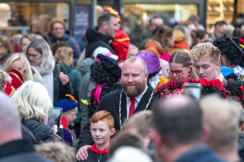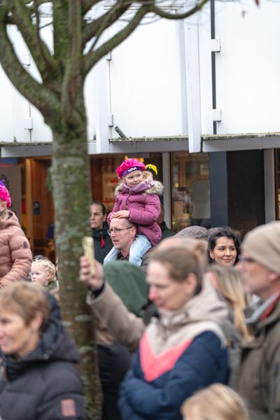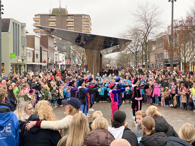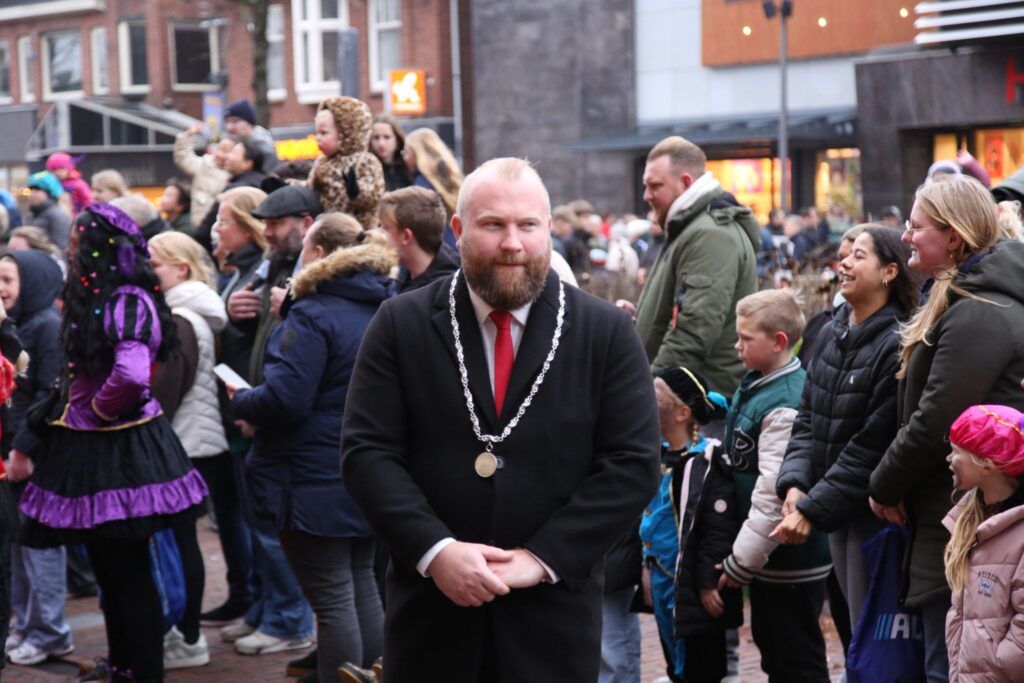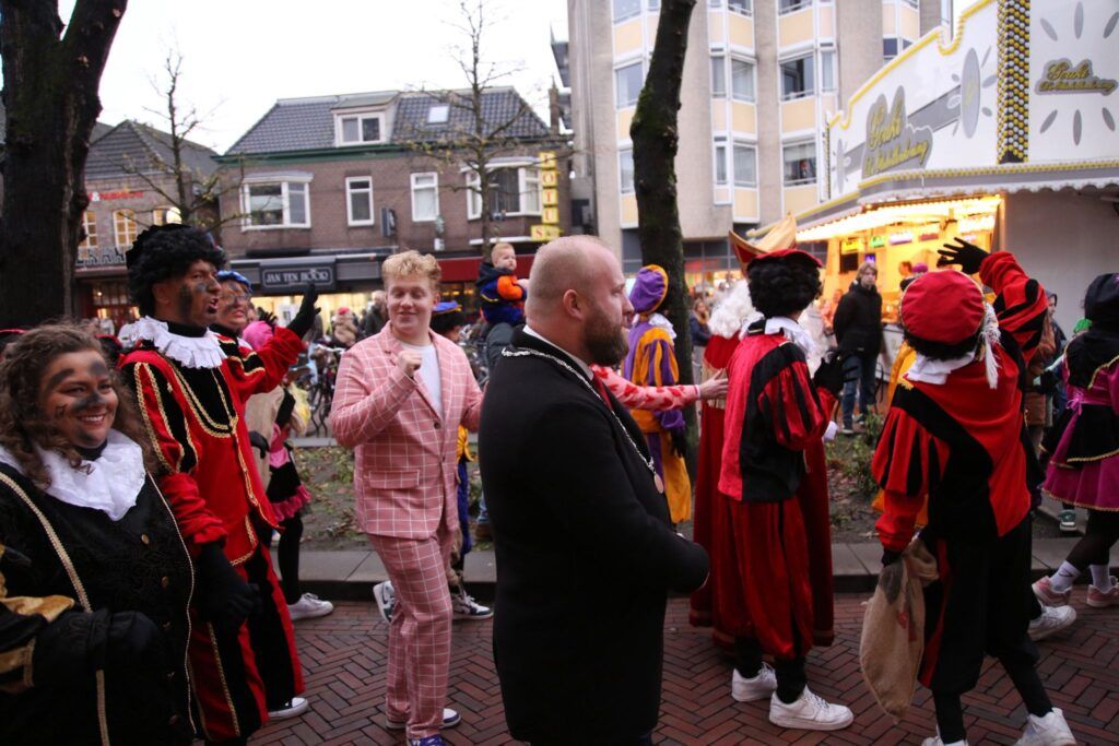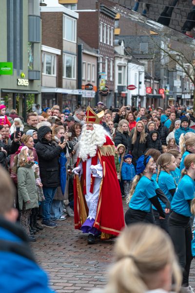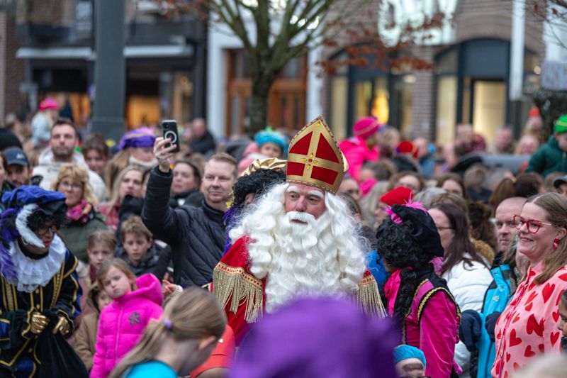 Ondanks de miezerregen en de frisse kou stonden er vele kinderen in de rij om een glimp op te vangen van Sinterklaas en zijn Pieten. Met de Sint kwam ook de burgemeester mee, hij liep mee en praatte de Sint bij van wat er speelt bij de kinderen in Hoogeveen. In een rustig tempo liepen ze richting de hoofdstraat om daar te worden verwelkomt door heel veel blije kinderen.