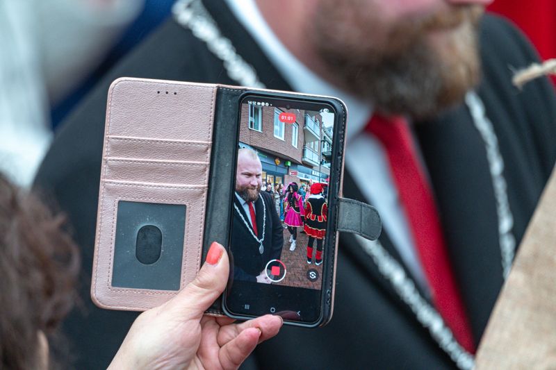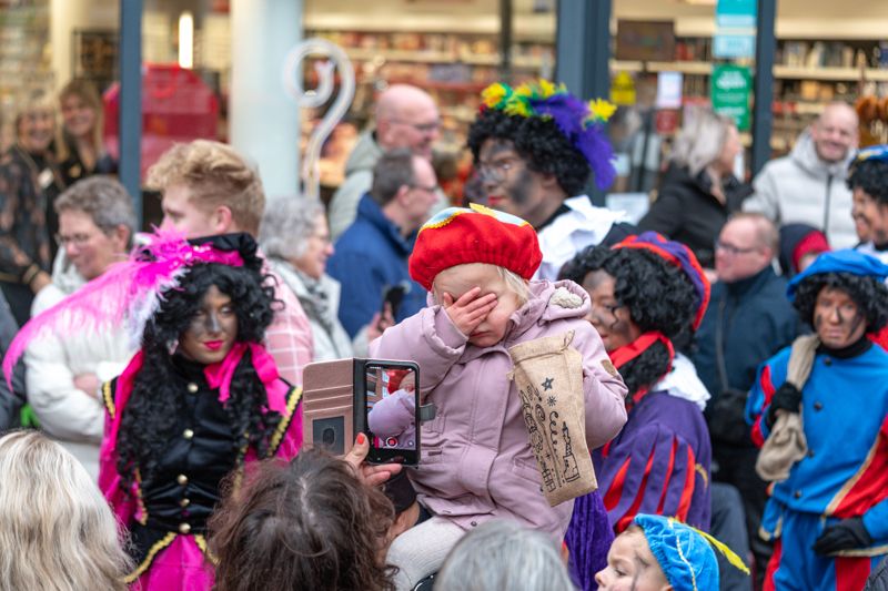 Het viel op dat Sinterklaas ditmaal heel veel hulppieten had meegenomen die voor hem uitliepen om high-5’s, pepernoten en snoep uit te delen.