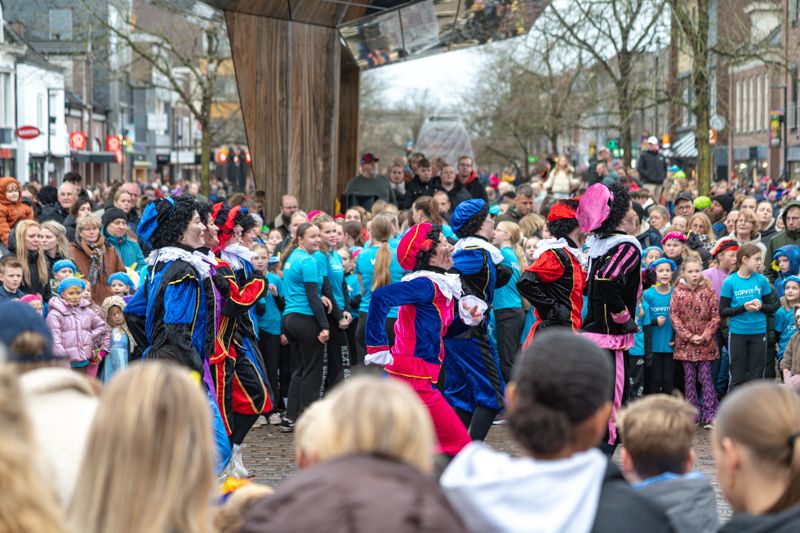 In het midden van de hoofdstraat stonden de dansers van dansschool TopFit om daar verschillende dansen te laten zien waarvoor ze al verschillende weken hebben geoefend. Sinterklaas was zeer onder de indruk en hij heeft zelf ook nog meegedanst. Aangezien de Sint van iedereen van alles weet, danste hij mee alsof hij zelf op auditie bij TopFit was geweest.