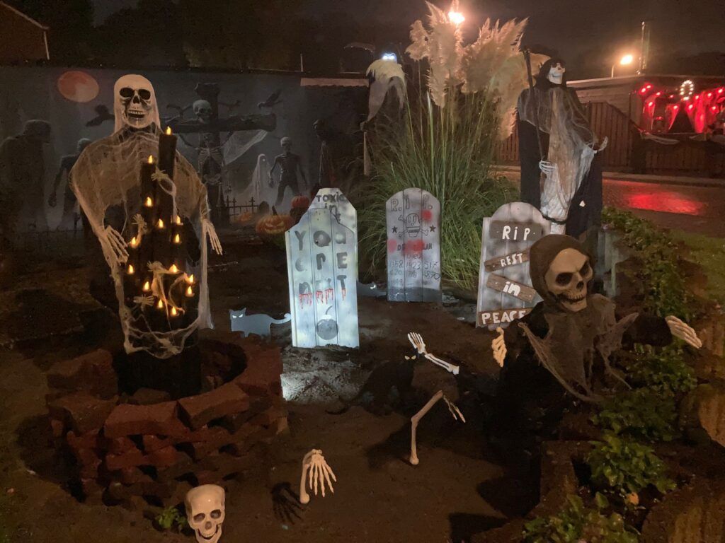 Wie eens lekker griezelen wil moet toch echt even naar Hollandscheveld. Een aantal tuinen aan de Dr. Broekhofstraat in Hollandscheveld zijn omgetoverd tot mooie Halloweenvoorstellingen.