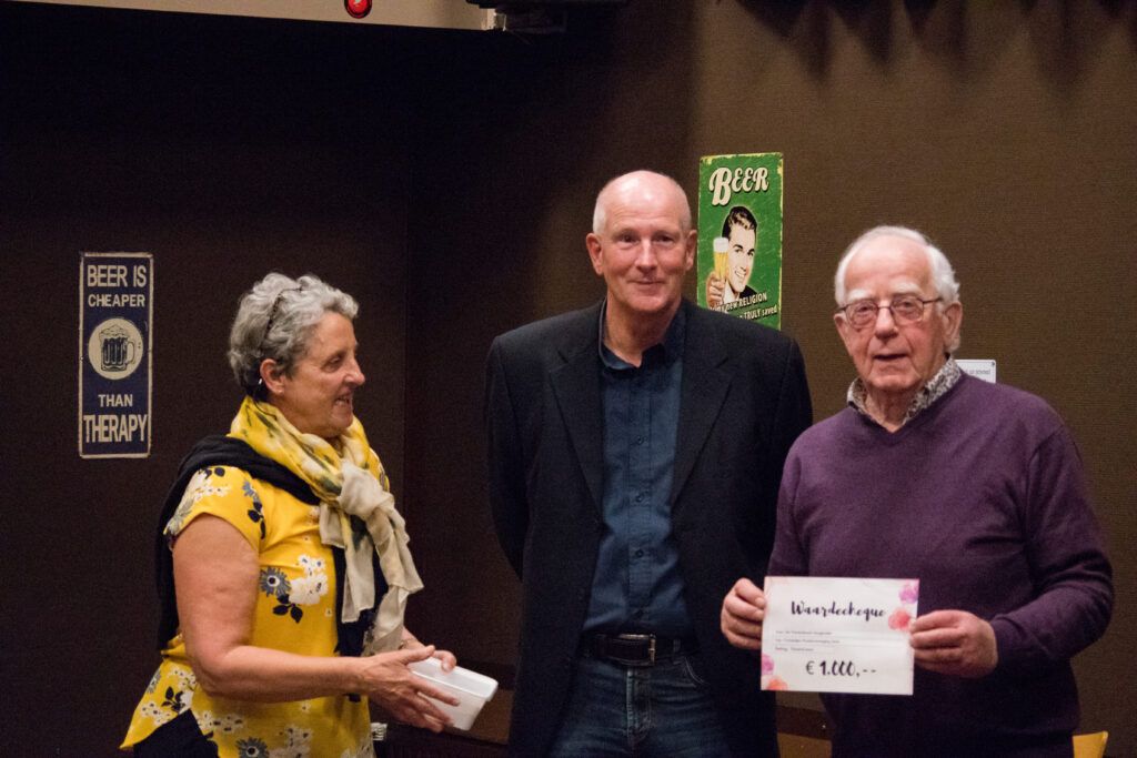 De cheque werd onlangs tijdens een repetitie overhandigd aan een delegatie van de voedselbank. Dolf Dekker, PR-medewerker van de Voedselbank Hoogeveen, en Otto van der Veen namen de gift dankbaar in ontvangst: