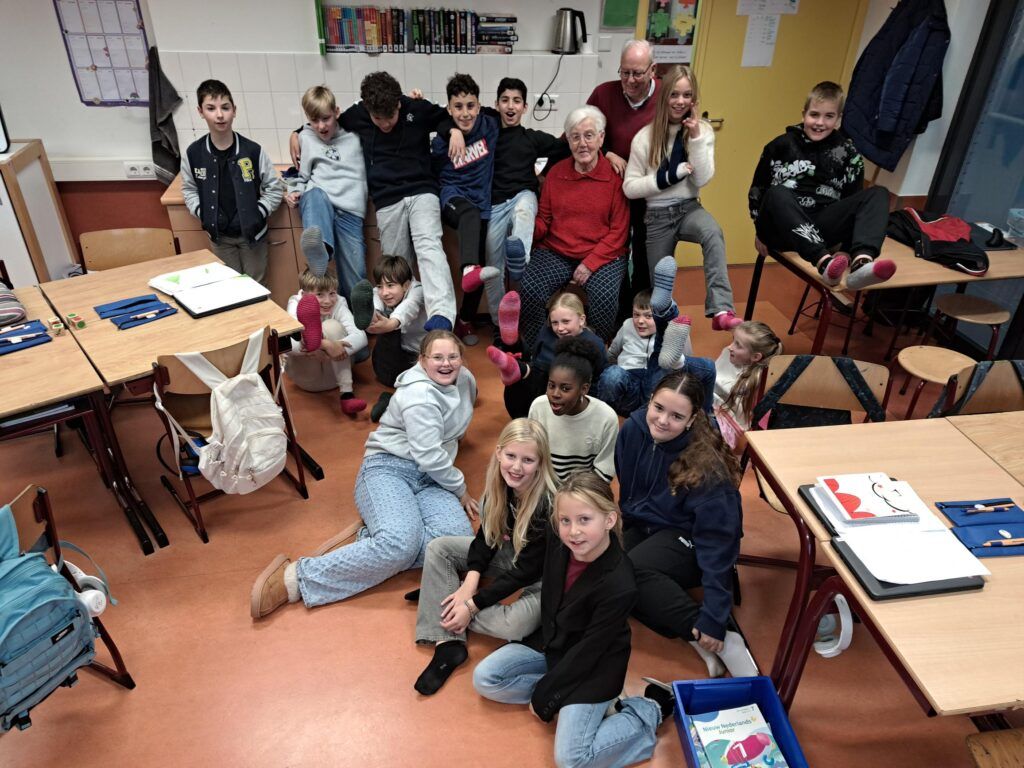 Bij groep 7/8 van OBS Apollo lopen twee heel bijzondere helden rond — opa en oma van 83 en 84 jaar. Al jaren staan zij klaar voor “hun” kinderen. Oma breit met liefde slofjes voor de hele klas, en het nieuwste model met de strikjes is tegenwoordig zó populair dat de bestellingen via de juf binnenstromen.