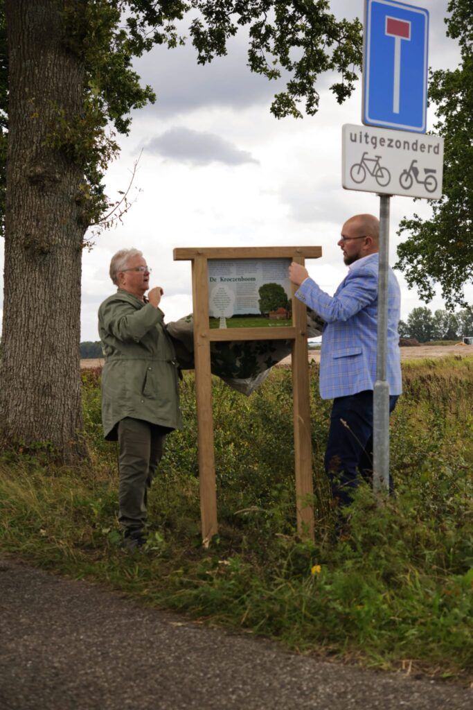 Namens de gemeente Hoogeveen kwam wethouder Niek Wind het bord samen met een van de nazaten van de familie Kroezen onthullen.