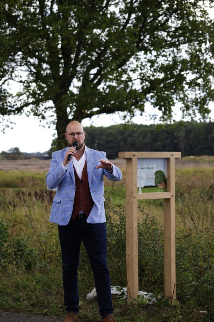 Historicus Albert Metselaar kwam nog enige uitleg geven over de geschiedenis van de boom, zo werd hij geplant in 1925 om schaduw te geven aan de in 1921 gebouwde boerderij. Tijdens de oorlog werden op de boerderij en in een hut in het bos er achter onderduikers opgevangen.