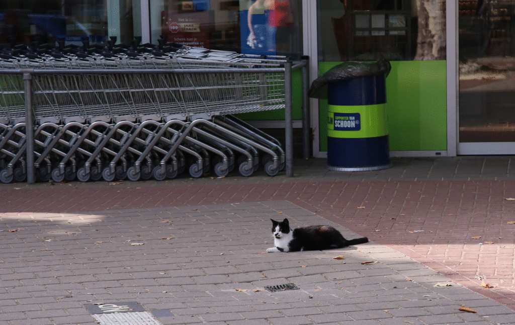 Dat poezen bijzondere dieren zijn weten we natuurlijk allang. Eigenzinnig ook. Sommige van deze dieren hebben een dagelijkse routine om de dag mee te vullen. Zo heb je katten die in een café wonen (de cafépoes), die bij een bushalte (de buspoes) zitten of op een station (de perronpoes). In Hollandscheveld is er ook zo eentje, namelijk de Pluspoes. Omdat ik mijn boodschappen doe bij de Plus kom ik hem geregeld tegen. Natuurlijk krijgt ie dan een aai over de bol en een kriebel aan zijn buik. Vindt ie heerlijk. Er zijn ook mensen die hem niet zien zitten maar dat mag de pret niet drukken, meneer trekt zich daar niets van aan. Hij doet verder niets of niemand kwaad dus ‘whatever’! Door wat speurwerk kwam ik er achter dat ie Otto heet en verderop in de straat woont. Hij schijnt uit een asiel gehaald te zijn en is erg gelukkig tegenwoordig, mits ie maar de hort op mag. Omdat ik kunstschilder ben en al jaren allerlei poezen vastleg op het doek was Otto uiteraard in dat opzicht ook heel interessant voor mij. Aangezien hij er geen zin in had om bij mij thuis te komen poseren heb maar wat foto’s van hem gemaakt en die gebruikt. Bij twijfel of verdere informatie kon ik natuurlijk altijd even naar de Plus om hem ‘in real life’ te bekijken. Ik vond het wel een ding om hem te linken aan Hollandscheveld en uiteraard aan de Plus. Zodoende is het schilderij geworden zoals ie is. Otto omringd door Hollandscheveldse symbolen.