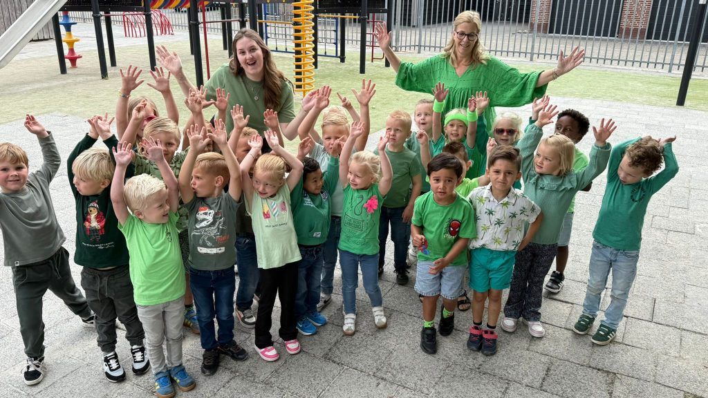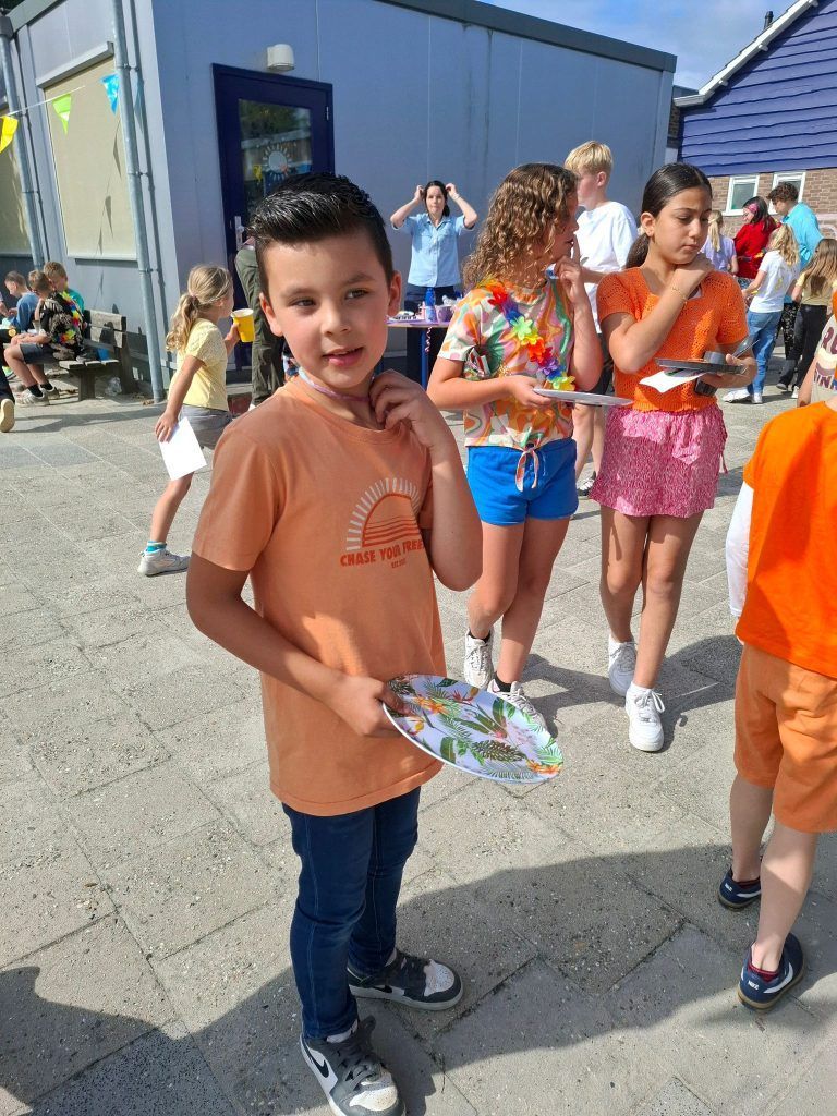 Het was een feestelijke gezellige toestand en het schoolplein ziet er nu ook kleurrijk uit.