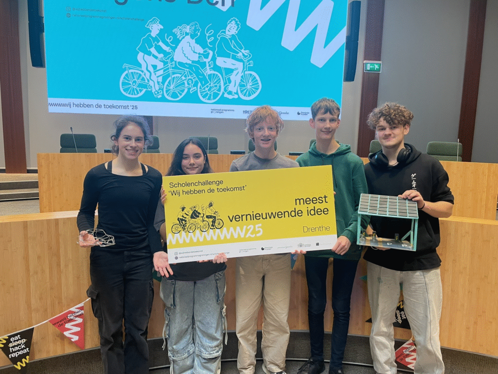 Ook de overige teams kregen complimenten voor hun ideeën en samenwerking. De jury sprak haar waardering uit voor het hoge niveau van de presentaties en de professionele manier waarop de leerlingen hun oplossingen onderbouwden. Kroezen: “Met hun deelname aan deze scholenchallenge hebben de RvEC-leerlingen laten zien dat ze innovatieve denkers zijn die met kennis, creativiteit en enthousiasme bijdragen aan een duurzamere toekomst voor Drenthe. Daar mogen ze trots op zijn!”
