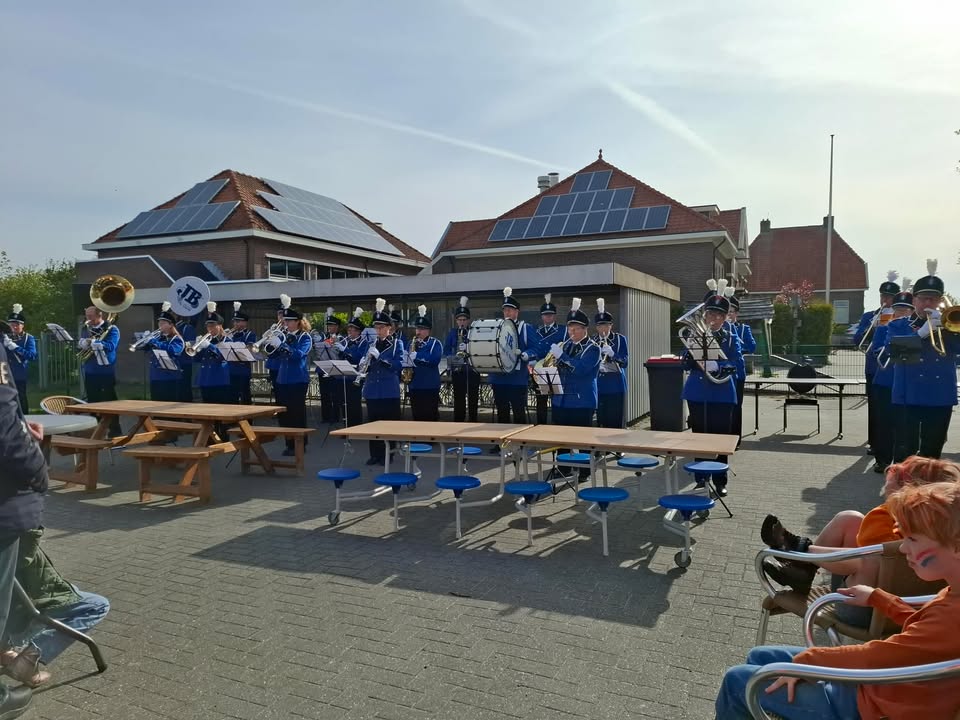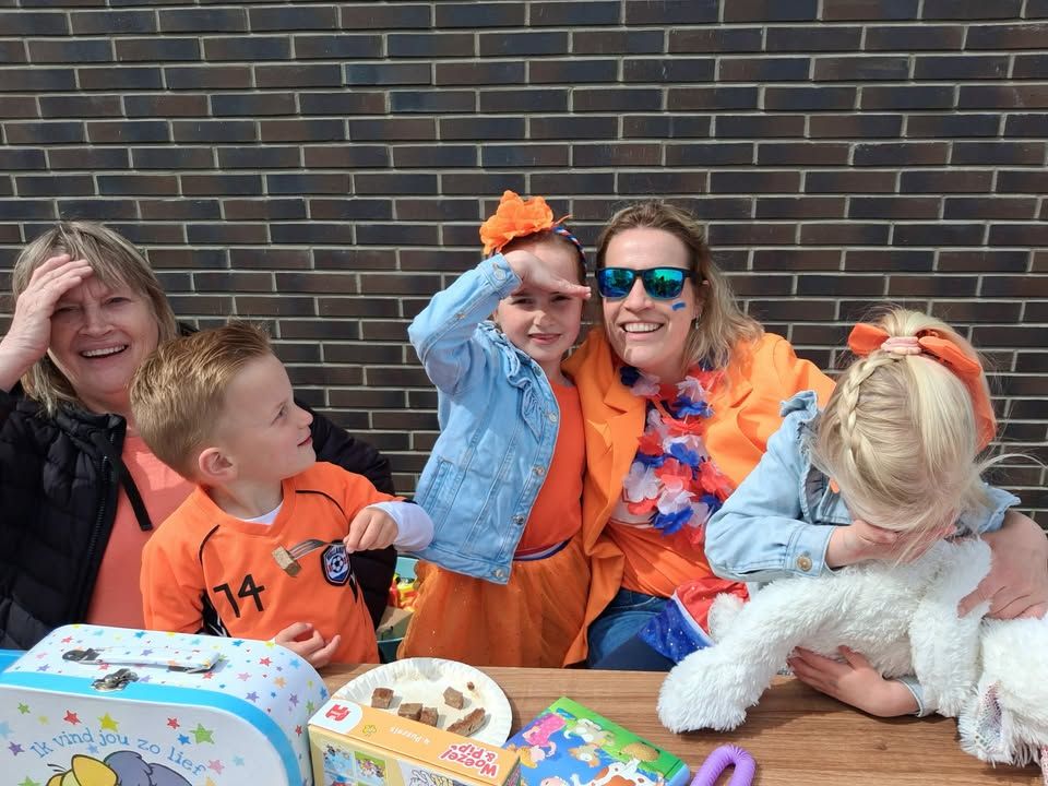 Koningsdag was muzikaal geopend door Juliana de Bazuin waarna het was voor de rommelmarkt, optocht, springkussens. En natuurlijk even gezellig bijkletsen op het terras.