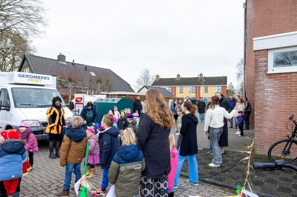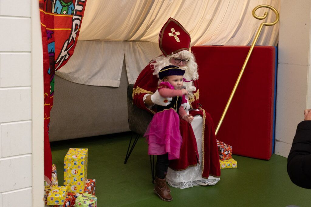 Bij het dorpshuis wachten de kinderen hem op waarna de stoet naar binnen ging. Hier was een mooie pietencircuit uitgezet, waar Sinterklaas keek of dit allemaal wel goed ging. Ook konden de kindertjes samen op de foto met Sinterklaas. Foto: Johan Lunenborg