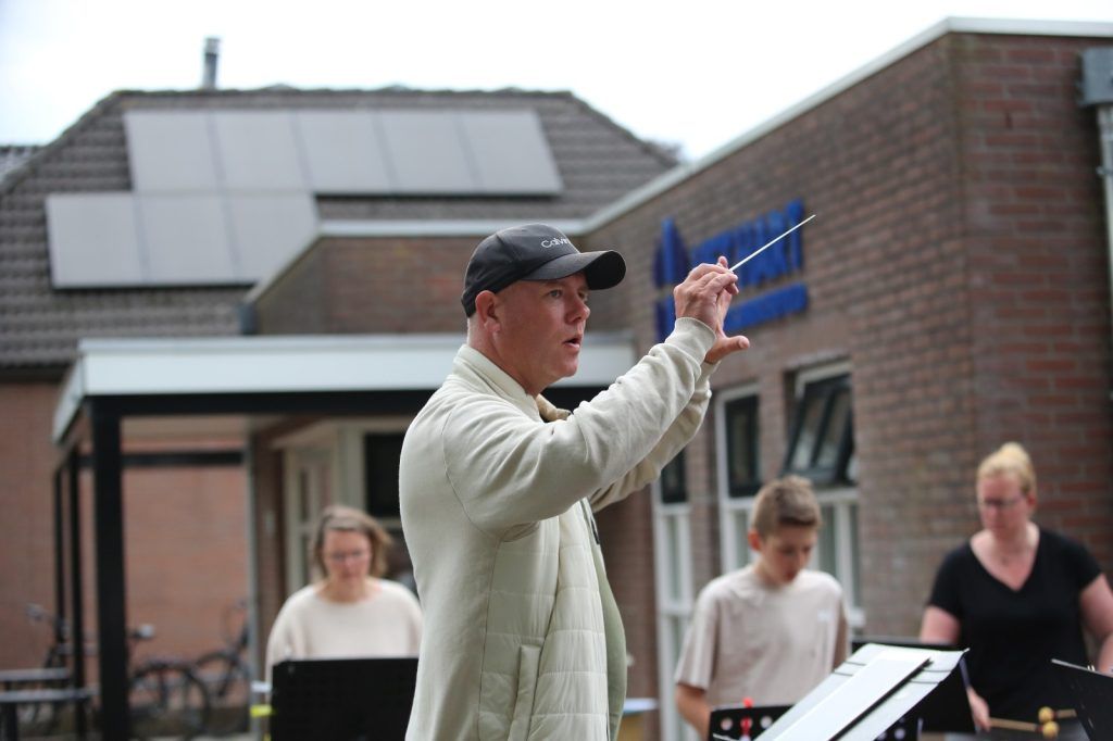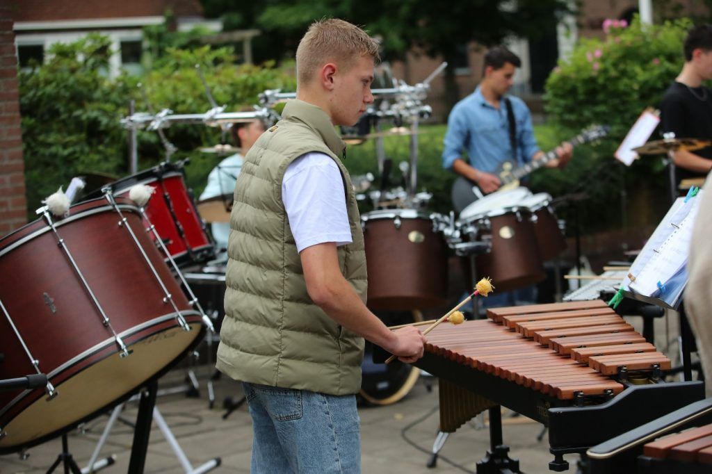 Dit buitenconcert was donderdagavond Naast het Hart van Hollandscheveld. Hier bracht de slagwerkgroep een gevarieerd programma vol ritme en gezelligheid.
