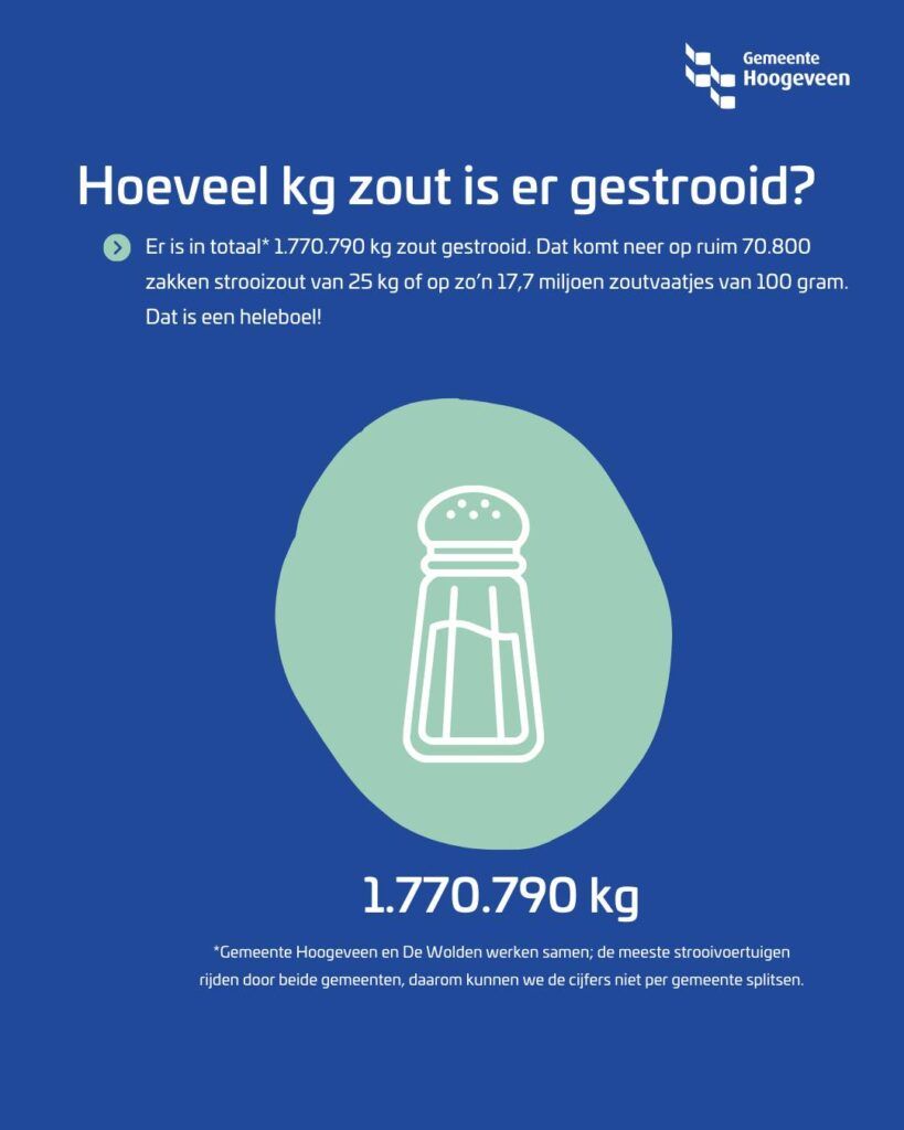 Wij doken voor jou in de cijfers: hoeveel kilo zout is er gestrooid en hoeveel uur waren we hier eigenlijk mee bezig? Blader door de afbeeldingen en ontdek leuke feitjes over deze winter.