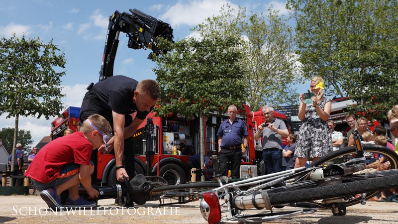 De jongste handelaren deden in de morgenuren goede zaken en verdienden op deze manier alvast een vakantie zakcentje bij. Ook op de braderie was het gezellig druk. Een activiteit die veel belangstelling had was de demonstratie van het promotieteam van de brandweer. Geholpen door een echte brandweerman mochten kinderen onder ander helpen een fiets door te knippen.