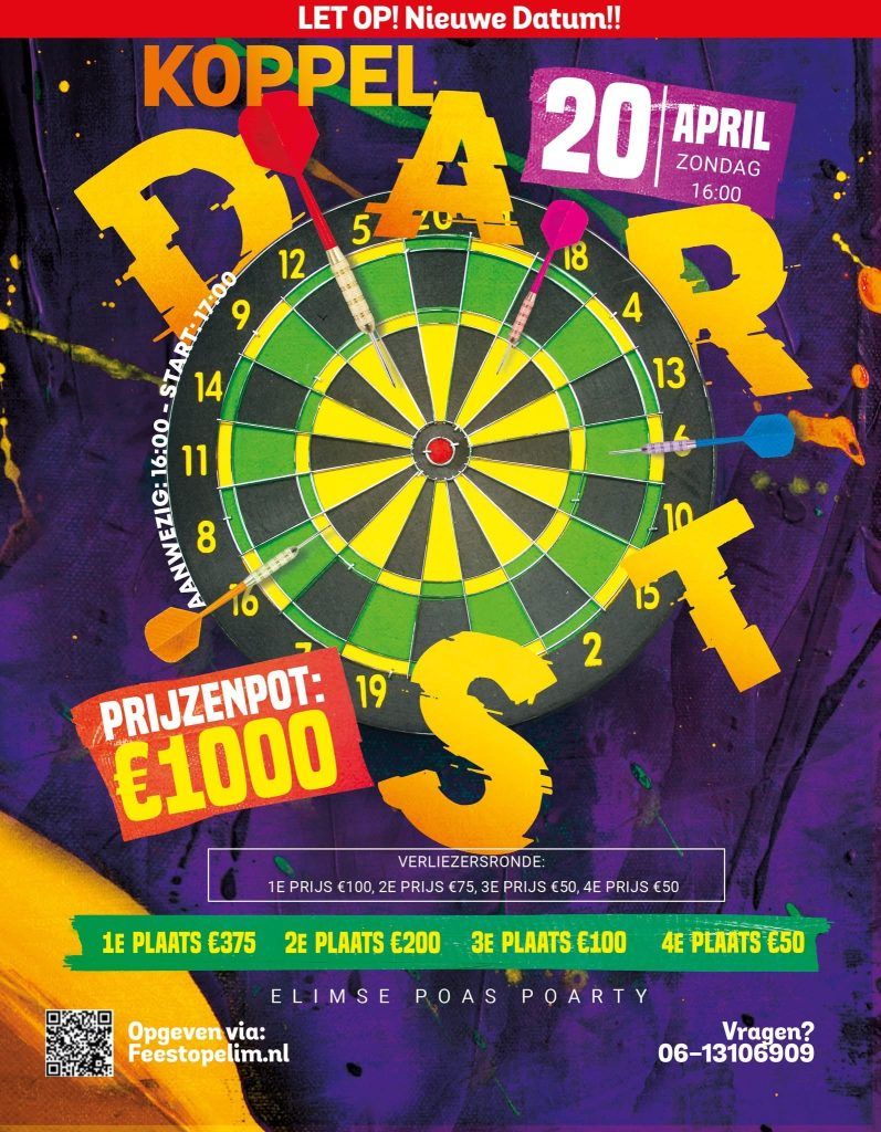 Zondag – Koppeldarttoernooi (Nog een paar plekjes vrij)