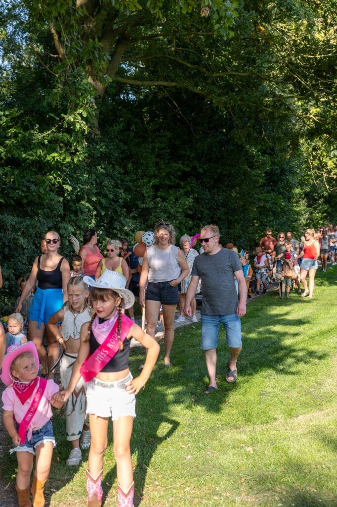 Veel kinderen waren dan ook verkleed en deden mee met de optocht. In een lange stoet trokken de kinderen door het mooi versierde dorp.