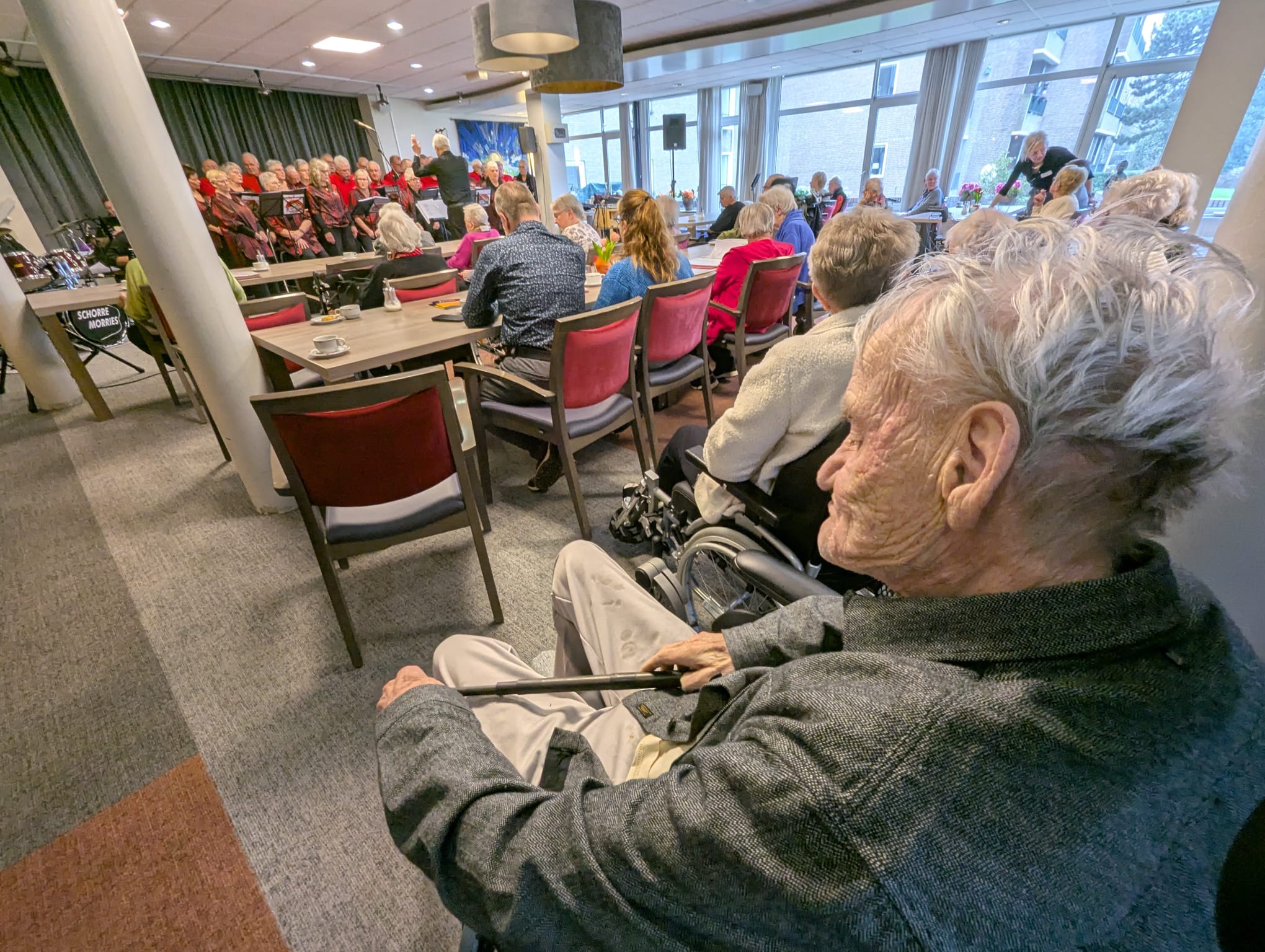 Muziek achter de voordeur bracht vandaag (zondag 1 februari2026) livemuziek tot in de huiskamers van Hoogeveen. Dit was ook het geval achter de ‘voordeur’ van woonzorgcentrum ‘Olden Kinholt’ in Hoogeveen. Hier brachten de Schorremorries de sfeer er lekker in.