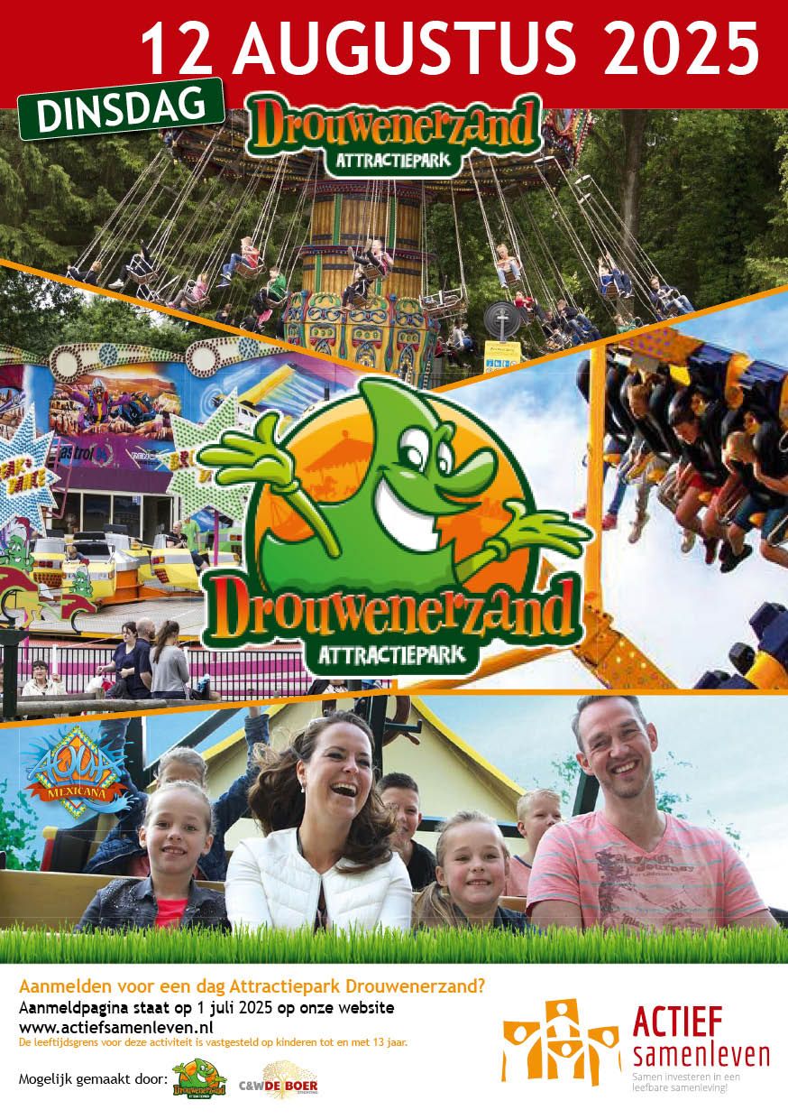 Vandaag gaan alle reserveringsbevestigingen de deur uit en we kunnen nog 9 mensen meenemen naar Attractiepark Drouwenerzand op dinsdag 12 augustus.
