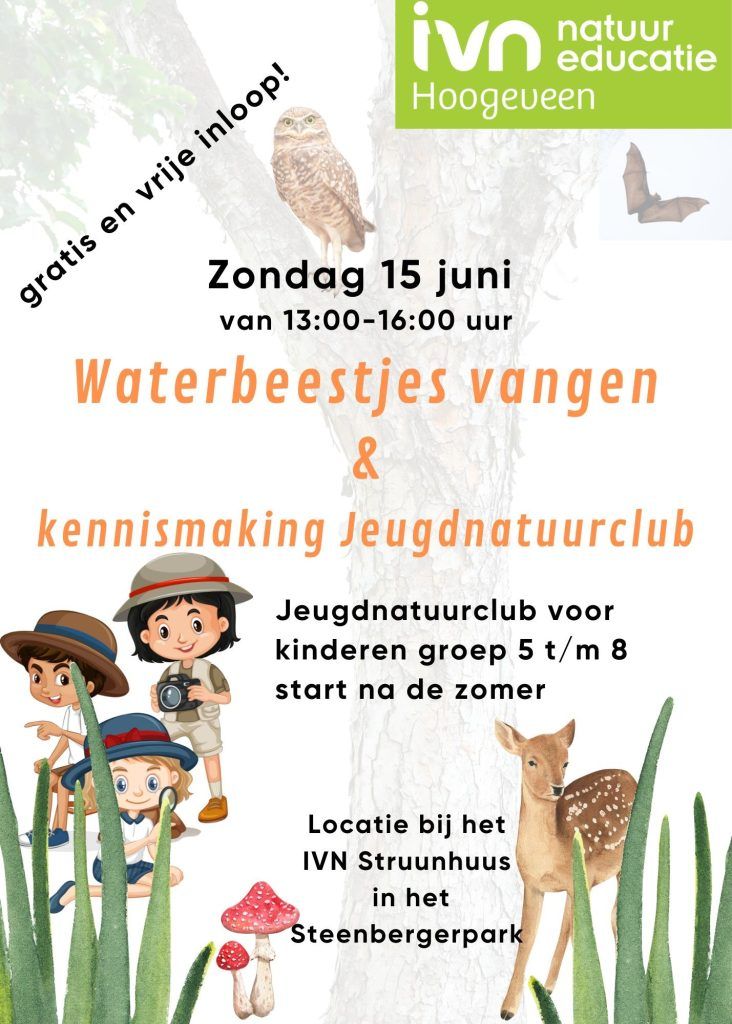 Kom kennis maken met onze leuke jeugdactiviteiten tijdens de Slootjesdag in het Steenbergerpark. IVN organiseert hele leuke activiteiten en daar hoort ook de Slootjesdag bij. Op 15 juni vanaf 13:00 uur ben je welkom bij het IVN Struunhuus in het Steenbergerpark.