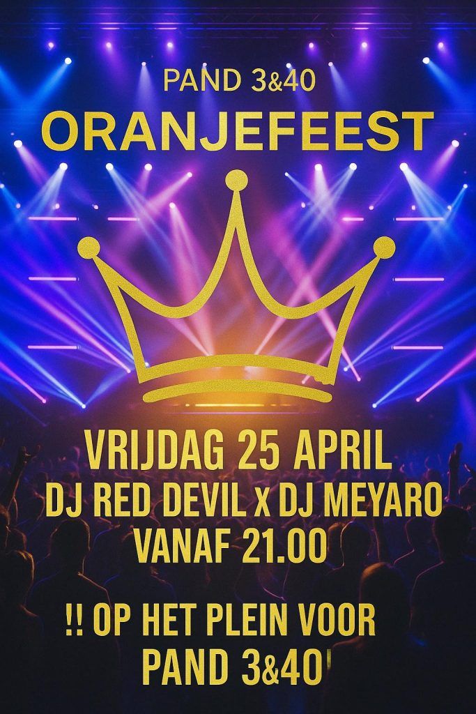 Het is weer tijd om oranje te gaan! Op vrijdag 25 en zaterdag 26 april barst het Oranjefeest los bij Pand 3&40 met een tweedaags spektakel op het plein voor de deur.