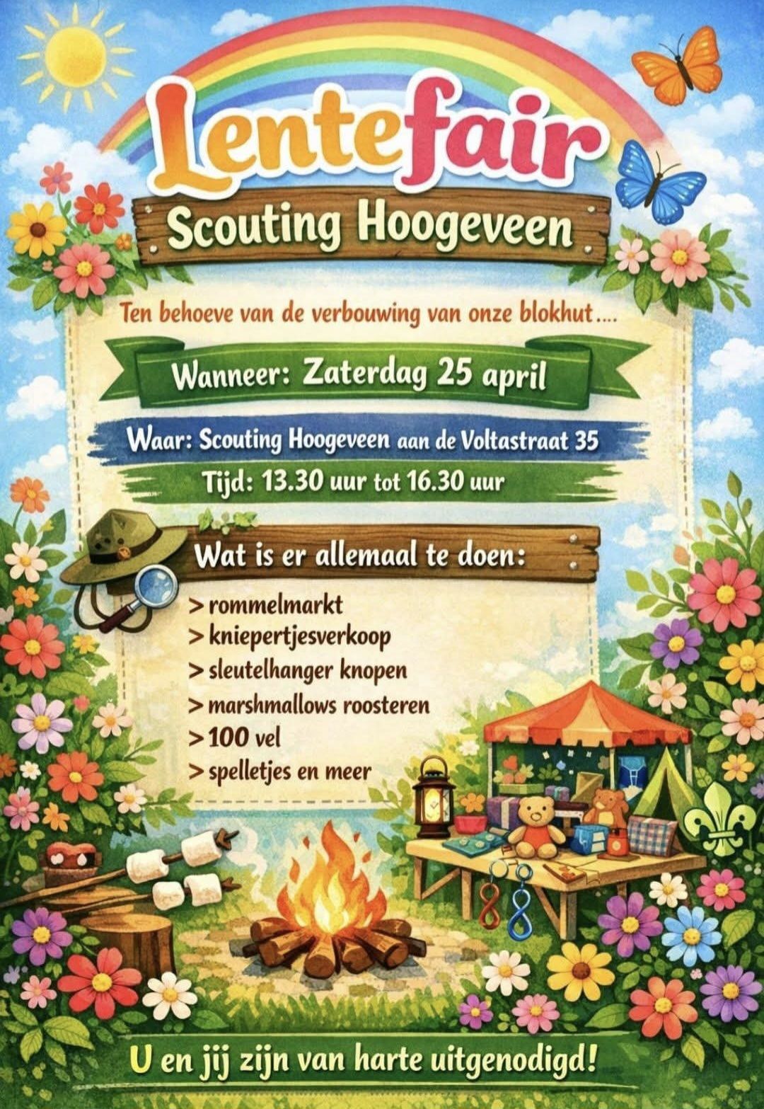 Zaterdag 25 april houdt Scouting Hoogeveen een lentefair tbv het financieren van de verbouwing van de blokhut in het Spaarbankbos.