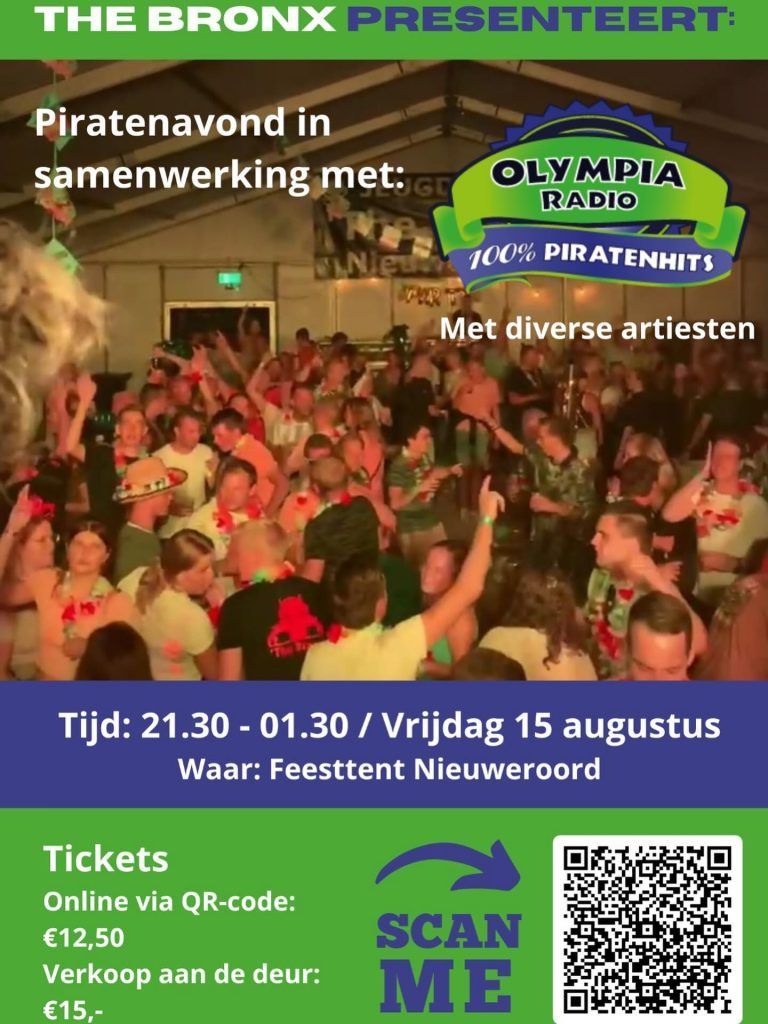 Bij zijn = meemaken dus….. koop je tickets voor €12,50 online via de onderstaande link, scan de QR-code op de poster die in de tent komt te hangen of voor €15 aan de deur.