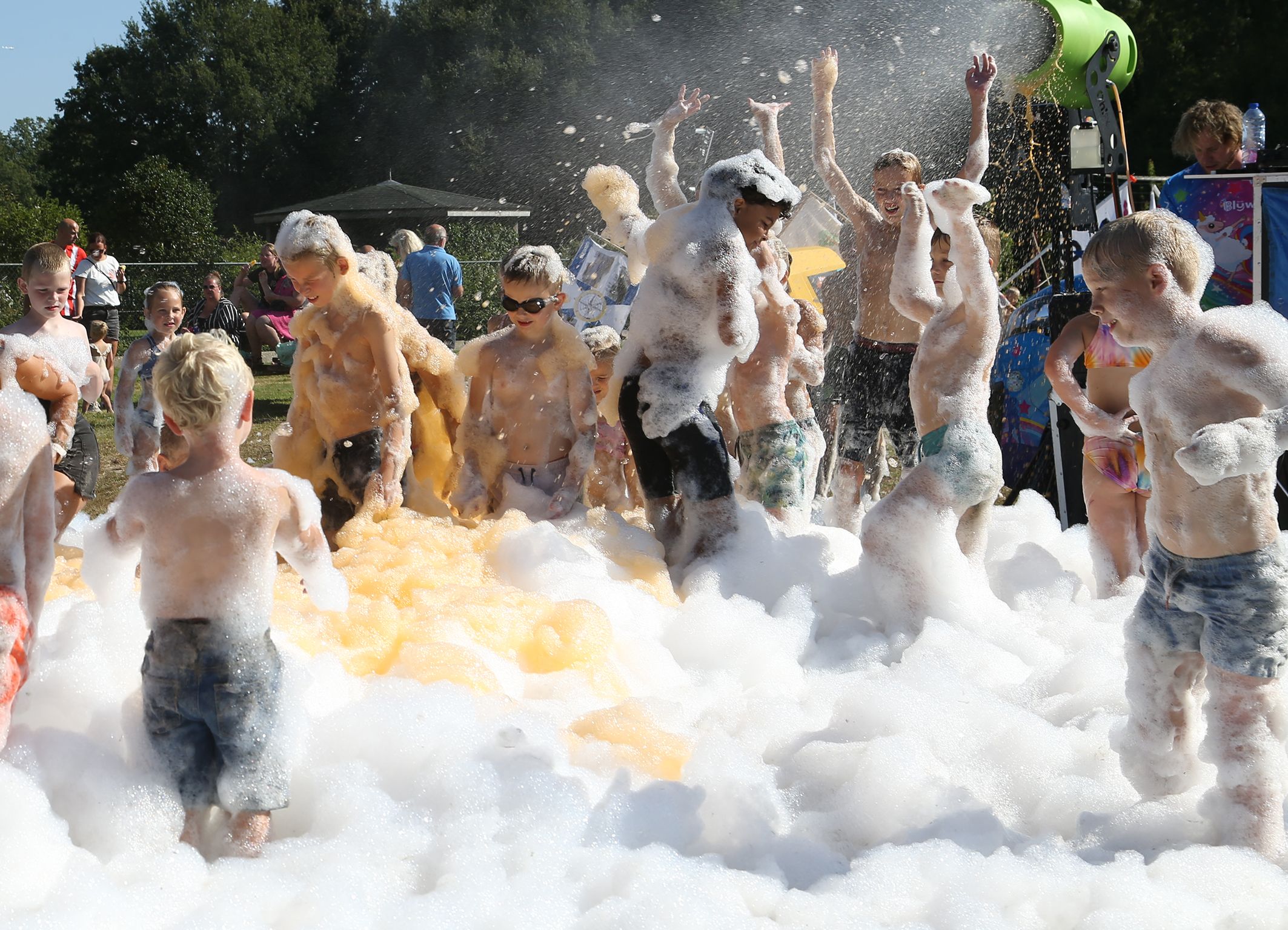 Schuimparty en buikglijden voor de kids.
