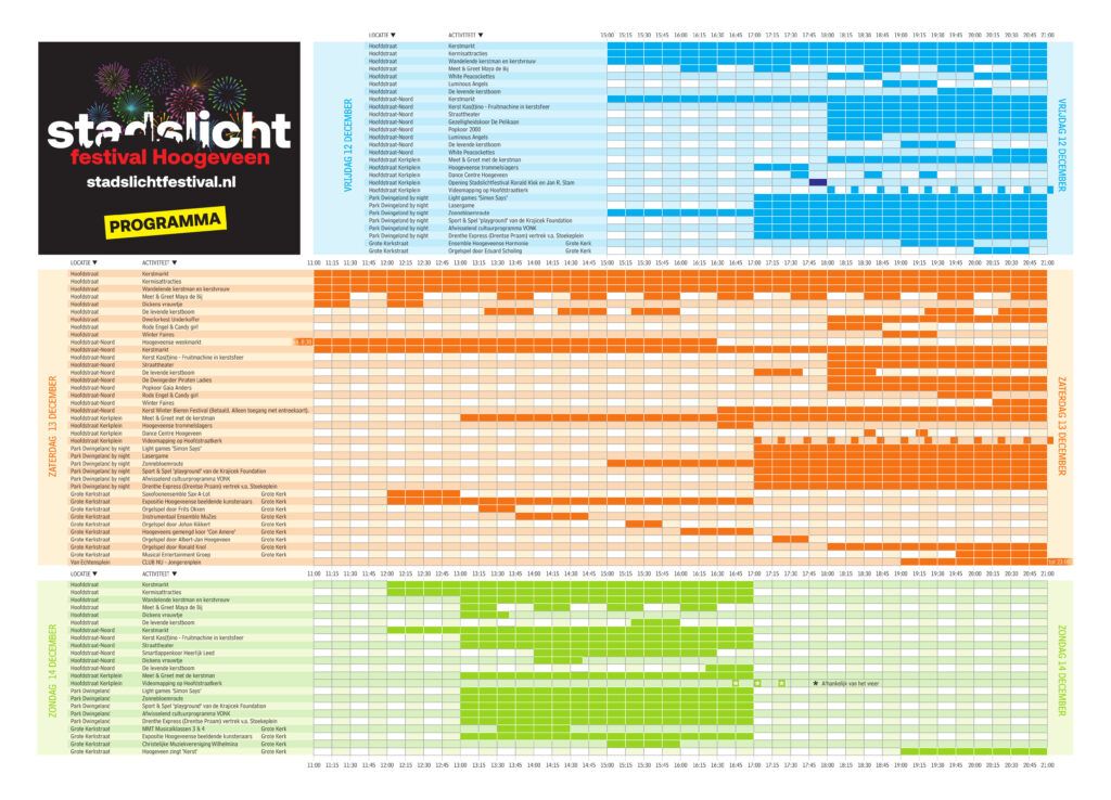 Het volledige programma en de timetable zijn vanaf eind deze week gratis verkrijgbaar bij ondernemers in de binnenstad en online via stadslichtfestival.nl en binnenstadhoogeveen.nl.