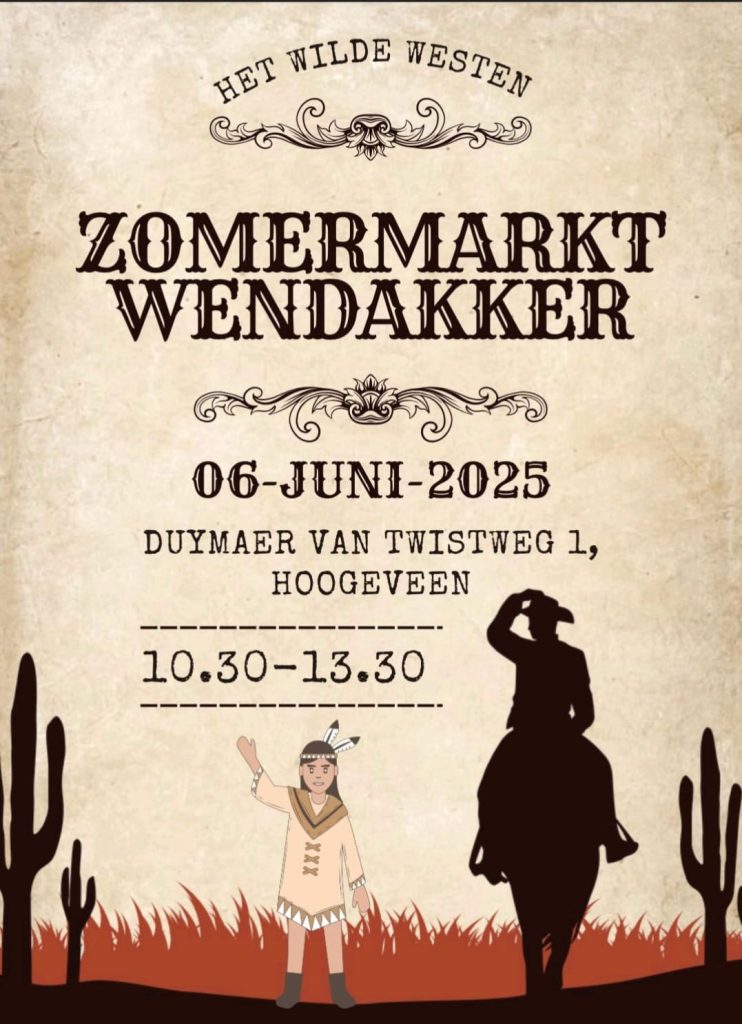 Op vrijdag 6 juni van 10:30 tot 13:30 uur, heeft De Wendakker een Zomermarkt met als thema ‘Het Wilde Westen’. Er staan kramen van verschillende zorginstellingen, waar handgemaakte producten worden verkocht. Ook SMELDZZ staat er met heerlijke geurende producten. Ook zijn er allerlei mogelijkheden om eten te kopen. Kom gezellig langs!