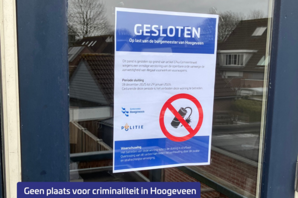 In de wijk Wolfsbos in Hoogeveen heeft burgemeester Martijn Breukelman vanochtend een pand gesloten, omdat daar een grote hoeveelheid illegaal…