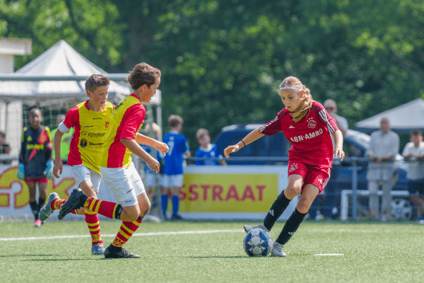HOOGEVEEN – De zon scheen fel boven sportpark Schutlanden, maar dat hield honderden jonge voetballers niet tegen om te schitteren…