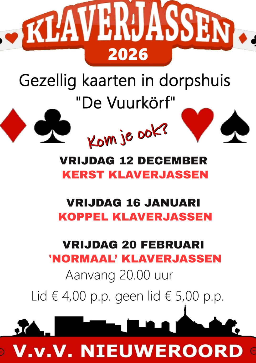 Op 12 december is er een gezellige Kerst Bingo- en Klaverjasavond in Dorpshuis de Vuurkorf. Een ieder is van harte welkom.