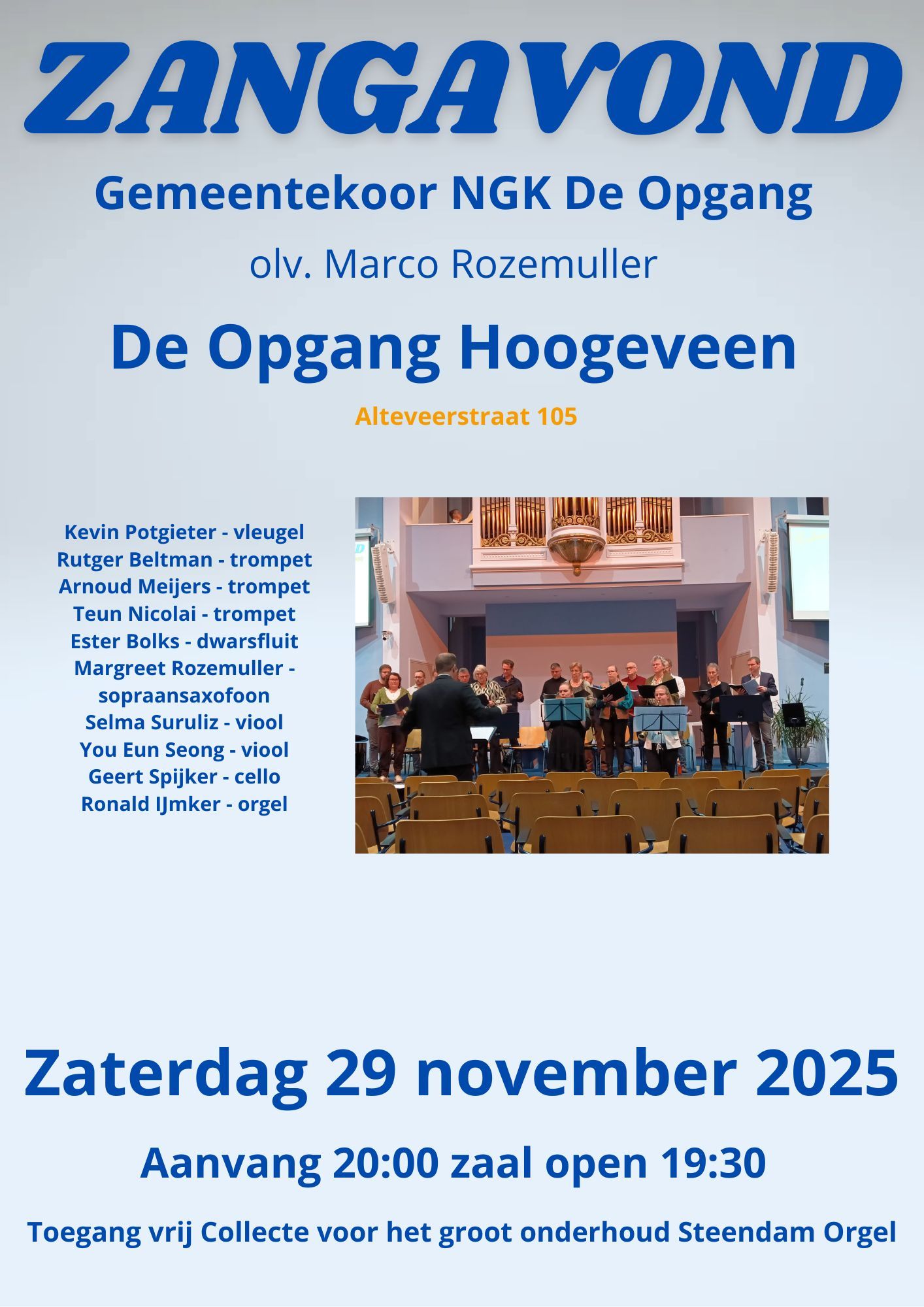 Aanstaande zaterdag bent u van harte welkom in De Opgang in Hoogeveen.