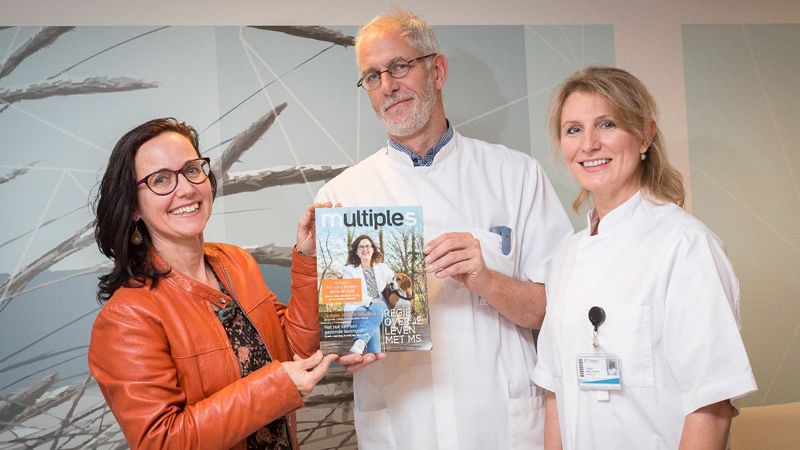 ‘Het magazine is gemaakt voor MS-patiënten en hun naasten en staat vol informatie en adviezen’, vertelt Katalin Horvath. Omdat de eerste uitgave zo goed is ontvangen, volgde een tweede editie van het blad. Deze editie heeft een speciale bijlage waarin het MS-team van Treant zich uitgebreid voorstelt aan de lezer. Naast MS-neurologen Katalin Horvath en Harry van Leusen, vertellen uroloog Maud Jongen, revalidatiearts Jeroen van Bodegom en MS-verpleegkundigen Erna Bakker, Gerda Nijholt en Annemarie Vader over hun visie op de zorg aan de MS-patiënt bij Treant. ‘Ik vind het mooi dat we met dit magazine onze patiënten tegemoet komen in hun informatiebehoefte en ik ben blij dat we het eerste exemplaar aan mevrouw van Dijk mogen overhandigen.’