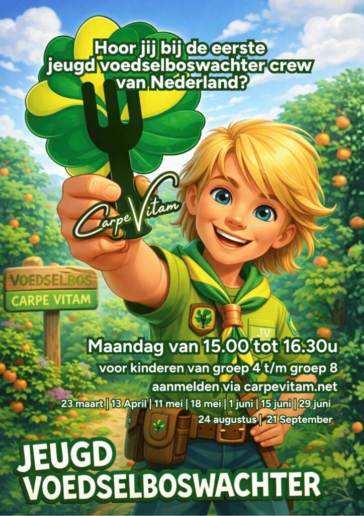 Kinderen uit groep 4 tot en met 8 krijgen dit voorjaar een nieuwe kans om buiten te leren: in Elim start het pilotprogramma Jeugdvoedselboswachter. In negen naschoolse lessen maken tien deelnemers kennis met voedselbossen, biodiversiteit en permacultuur. De lessen vinden plaats in het voedselbos van Carpe Vitam en zijn gratis toegankelijk.