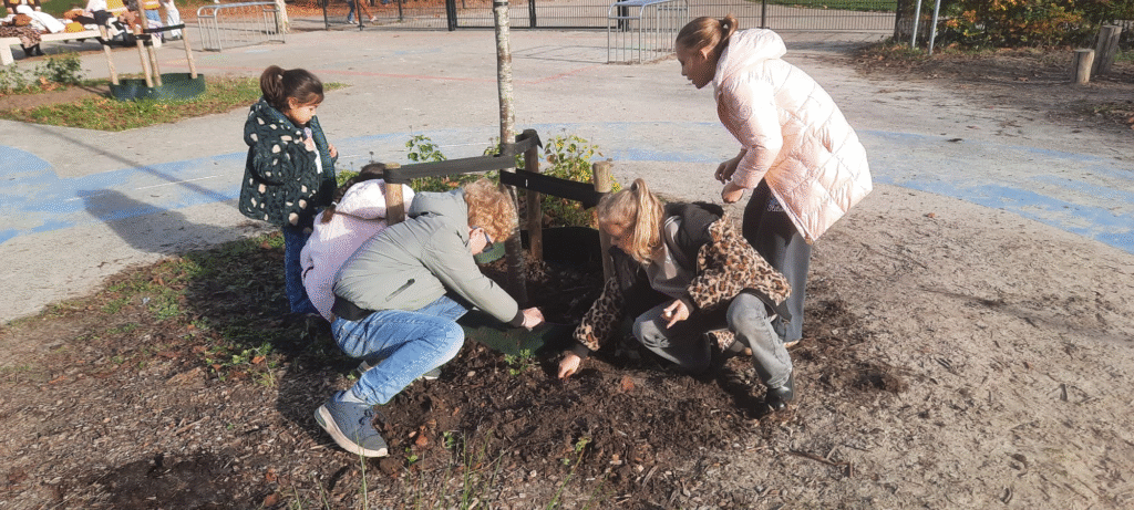 Vandaag hebben de kinderen van OBS Apollo vol enthousiasme bloembollen geplant op het schoolplein. De bloembollen zijn ter beschikking gesteld door de nieuwe klimaatburgemeester Dewy Mulder.