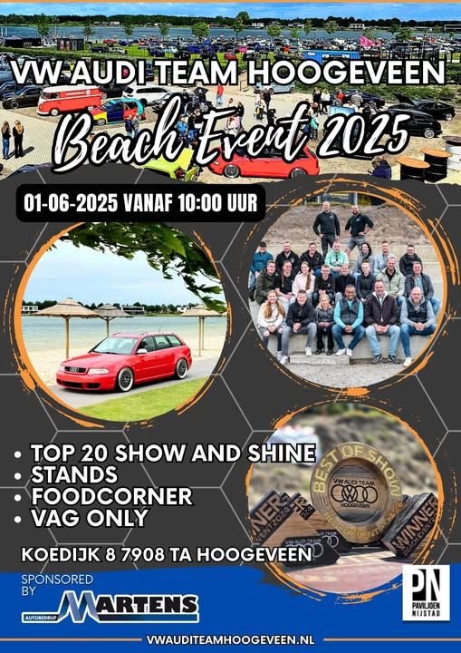 VW Audi Team Hoogeveen organiseert zondag 1 juni bij Paviljoen Nijstad de 4 e editie van het VW Audi Team Hoogeveen beach event,