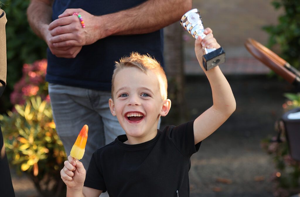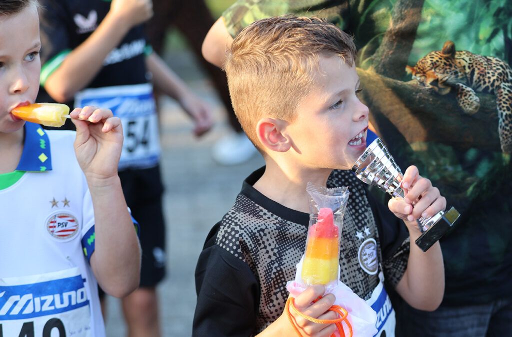 Ruim 100 kinderen hadden de stoute schoenen aangetrokken hadden om de finish te behalen. Op een enkele valpartij na verliep de avond heel sportief. En zoals bij elke editie is meedoen is nog steeds belangrijker dan winnen en daarom was er voor ieder kind een mooie tas gevuld met een beker en een ijsje. Dat laatste moest na de sportieve prestatie gelijk opgegeten worden om het vocht aan te vullen. Voor de snelste lopers waren er grotere bekers te winnen.