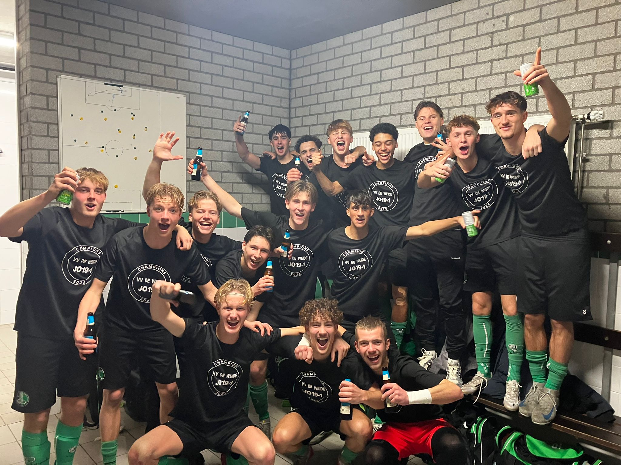 Hoogeveen – De Weide 19-1 heeft zich in divisie 6 tot ongeslagen kampioen gekroond. Negen wedstrijden, negen overwinningen en een doelsaldo van +35: de ploeg van trainers Andres Hoogeveen en Robert Benjamins was dit seizoen simpelweg een maatje te groot.