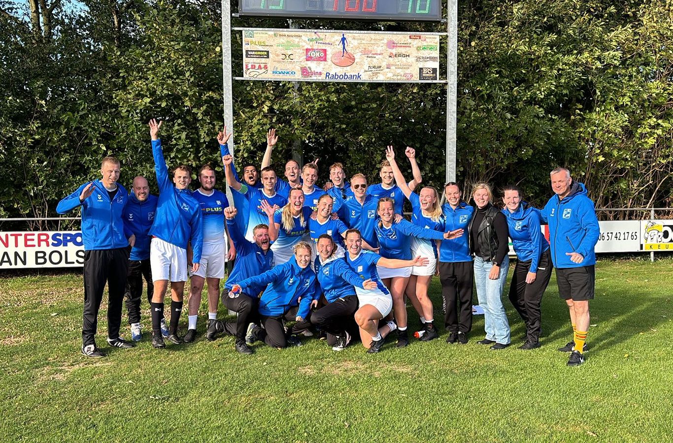 De wedstrijd eindigde met een stand van 27-3. Toen het eindsignaal klonk werd dit dan ook luid gevierd door de hele selectie, staf en toeschouwers. Met z’n allen hebben we nog tot in de late uurtjes het kampioenschap mogen vieren. Nu kunnen Anrico Scholten en zijn selectie alvast verder kijken richting het zaal seizoen.