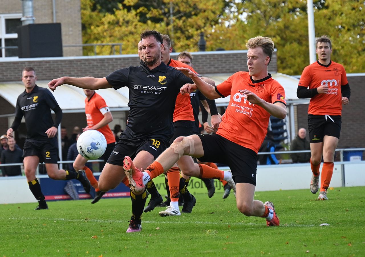 Met de 2-2 eindstand kon zeker SCN leven. Het begin van de wedstrijd was voor Hollandscheveld en Jan Hagen maakte de 1-0. Aan het eind van de eerste helft kwam SCN beter uit de verf. Robin Veldhuis maakte de 1-1. En zelfs voor rust werd het 1-2 door Rick Nijwenning. Na rust had Hollandscheveld weer een overwicht. En maakte Robin Koopman de 2-2. Hollandscheveld drong aan op de overwinning. Maar na een rode kaart voor Maykel Mol van Hollandscheveld, wist SCN de punt over de eindstreep te trekken. SCN zag nog een doelpunt door buitenspel afgekeurd. Hollandscheveld kreeg in deze wedstrijd wel kansen, maar de spitsen waren niet besluitvaardig genoeg. Te vaak werd de bal weer afgegeven, in plaats van zelf te schieten. Trainer Eric Prins van SCN erkende dat SCN, mede dankzij de rode kaart, een zwaarbevochten punt had binnen gehaald. Meteen na afloop waren er nog discussies van spelers met scheidsrechter Richard van Uijen. Dit leverde na de wedstrijd nog diverse kaarten op. Hierdoor missen enkele spelers de komende wedstrijden. Aan het eind dus een remise tussen trainers Bernard Koning en Eric Prins. Zo speelde de koning gelijk tegen de prins. Volgende week 11 oktober is Hollandscheveld vrij. En speelt SCN thuis om 14.30 tegen Steenwijker Boys. Foto: Jessica Mol