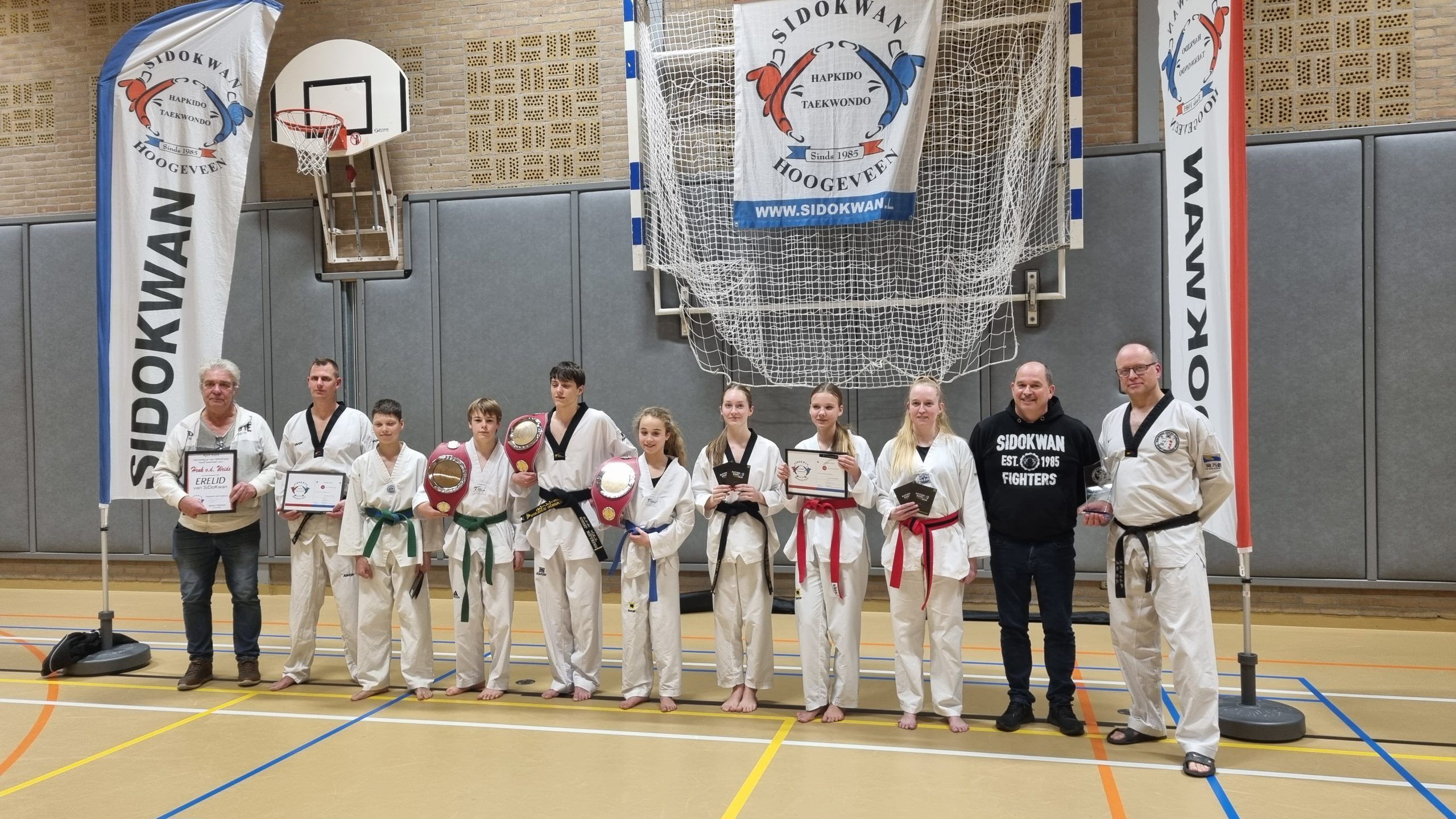 De gasttrainer dit jaar was Habib Kazimi uit Groningen. Kazimi is oud bondscoach van Nederland, heeft een eigen taekwondoclub en is docent-onderzoeker bij het Alfa College in Groningen. Kazimi gaf een leuke training waar zowel de little tigers en de senioren aan meekonden doen. Na een uur zweten was er aandacht voor de huldiging. Hoofdsponsor Jacko Dekker van Elis werd bedankt voor zijn tomeloze inzet als voorzitter van de club en Henk van der Weide werd benoemd als ere lid. Van de Weide stond samen met Silas Titalouw en Larry Meyer aan de basis van Sidokwan. Volgend jaar bestaat Sidokwan veertig jaar, in de loop der tijd heeft de club veel leden die aardig wat jaartjes bij de club trainen. Dit jaar trainen Jan Kremers al 15 jaar en Jolanda Maail, Maurice Hof, Werner de Vries, Charissa Krikken en Nessa Beuving 10 jaar bij Sidokwan. De jubilarissen ontvingen een badge en een vermelding op de website. Op 7 december werden Brian Prent, Lieke Heling, Miguel Molenaar Nederlands kampioen sparren en een dag later werden Chantal de Lange en Daan Meeusen Nederlands Kampioen in stijl. Deze spelers werden door het bestuur gehuldigd. Tot slot werd bekend gemaakt wie seizoenwinnaar is geworden. Jari Dekker die verantwoordelijk is voor de wedstrijdselectie had voor de winnaars een mooie Belt laten maken waarop de prestaties vermeld staan. In de klasse jeugd dames is Faya Gerding seizoen winnaar geworden . In totaal heeft Gerding acht gouden, twee zilveren en een bronzen medaille behaald. Van de 27 partijen heeft zij er dit seizoen 24 gewonnen. Bij de jeugd heren was Jouke Pricker de grote winnaar met zeven keer goud en twee keer brons. Pricker heeft zestien partijen van de achttien gewonnen. In de junioren en senioren klasse is Miguel Molenaar seizoen winnaar geworden. Molenaar heeft aan tien toernooien deelgenomen, heeft veertien van de 18 partijen gewonnen met zes gouden, een zilveren en drie bronzen medailles.