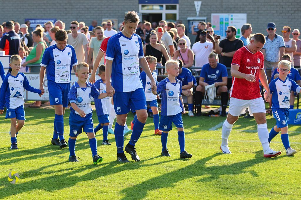 Na het officiële gedeelte begon de selectie — onder leiding van de nieuwe hoofdtrainer Arjan Keuken en assistent Jerry Hoogeveen — aan de warming-up voor het hoogtepunt van de avond: de wedstrijd tegen FC Emmen. Een bijzonder moment was het oplopen van de spelers samen met onze JO8-lichting, wat zorgde voor onvergetelijke herinneringen bij jong en oud.